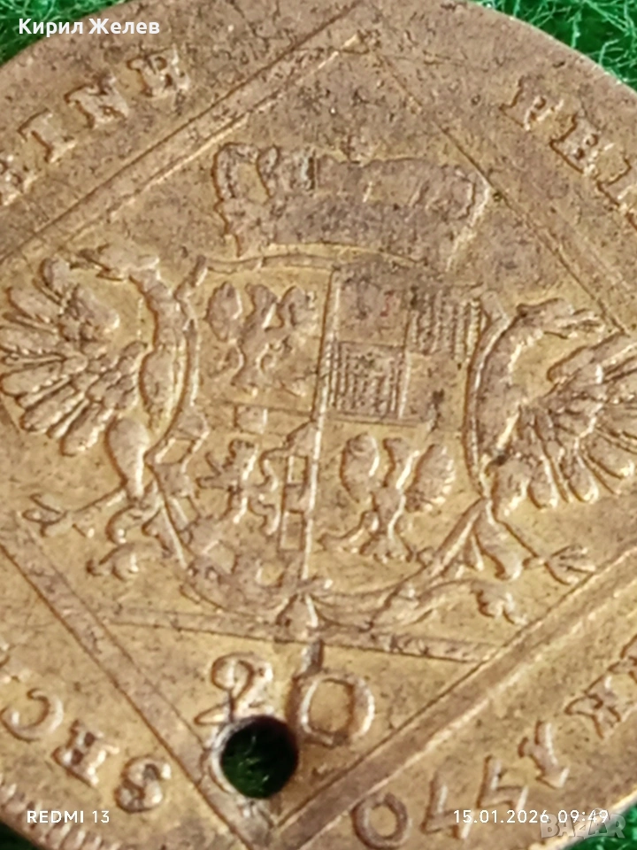 Сребърна монета 20 кройцера 1770г. Александър Бранденбург 52987 → Обява 53105474