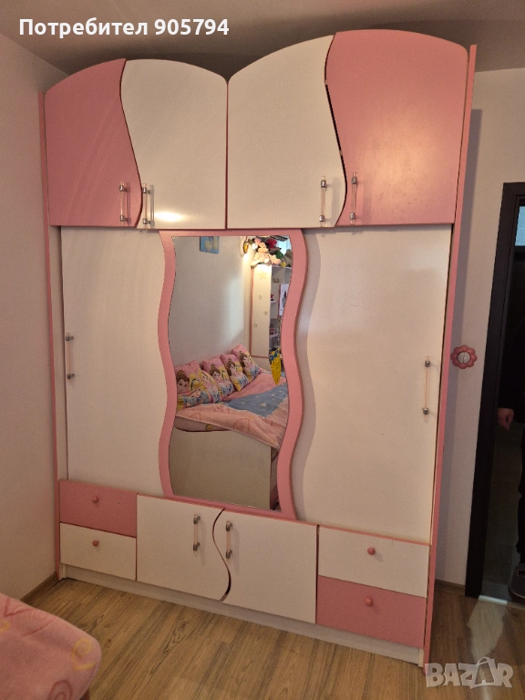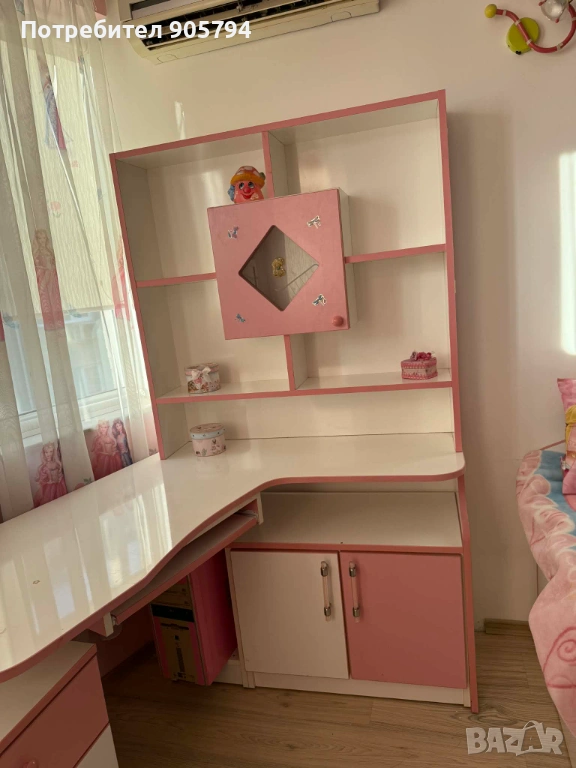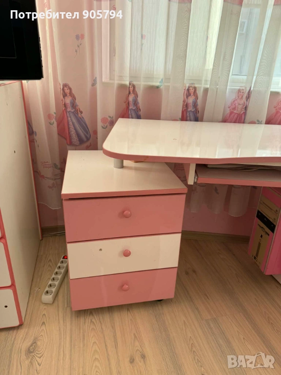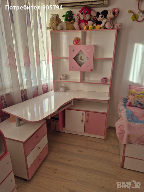БОНУС към мебелите на дет.стая са осветителните тела 3 бр.,2бр.етажерки перде,декор.възглавнички и др.неща.