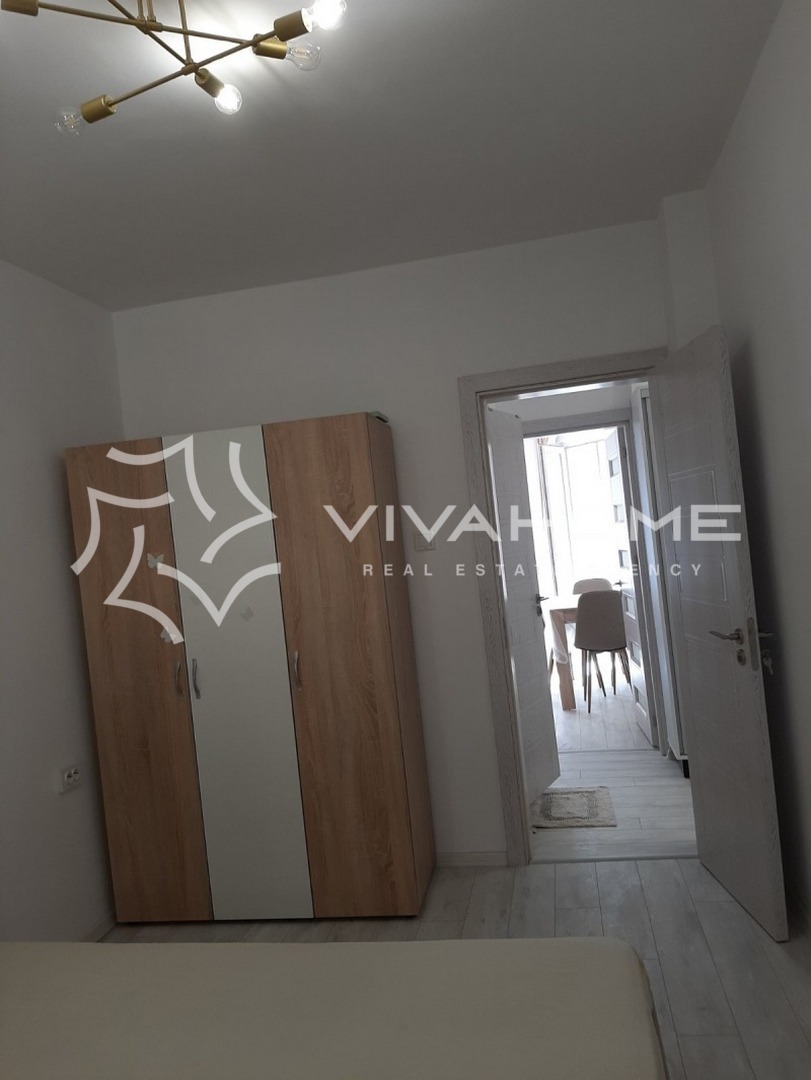 Апартаментът се намира на първи жилищен етаж и е освежен, напълно обзаведен и оборудван с всичко необходимо за комфортно ежедневие. Обзавеждането е подбрано безкомпромисно, с внимание към детайла и функционалността.