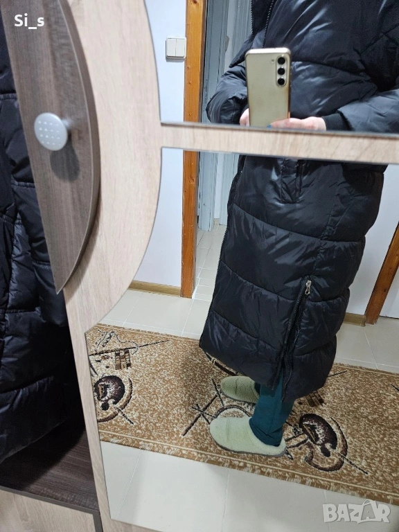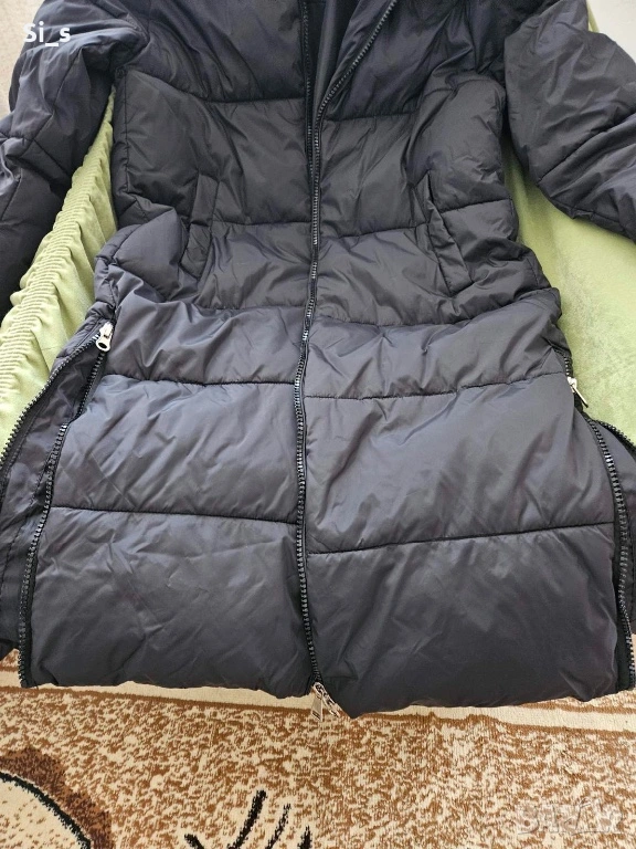 Черно дълго шушляково дамско яке Л размер → Обява 53105826