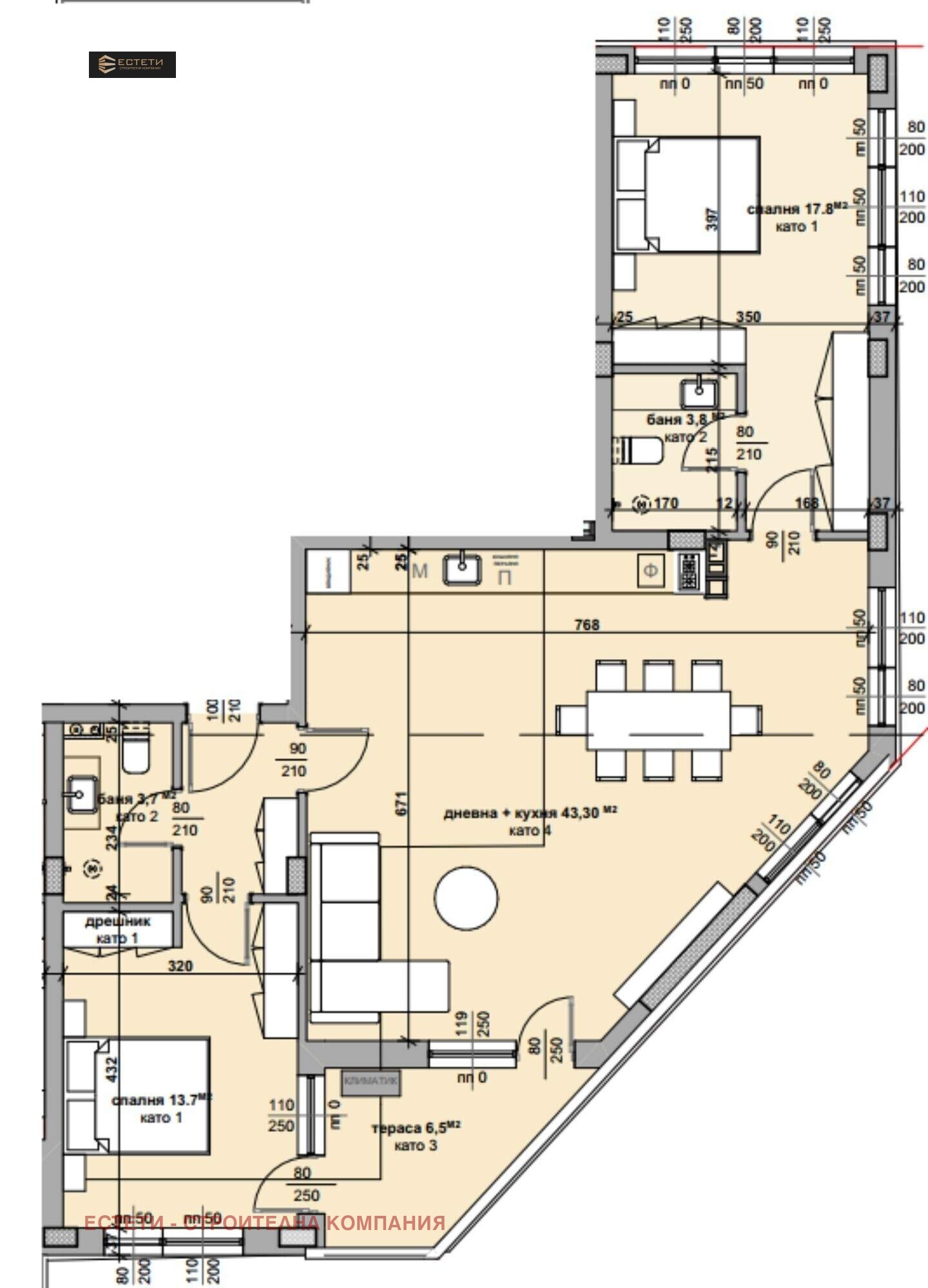 🏡 Тристаен апартамент състоящ се от: антре, дневна с кухня, спалня, баня с тоалетна. Квадратура - 133,27 кв. м.