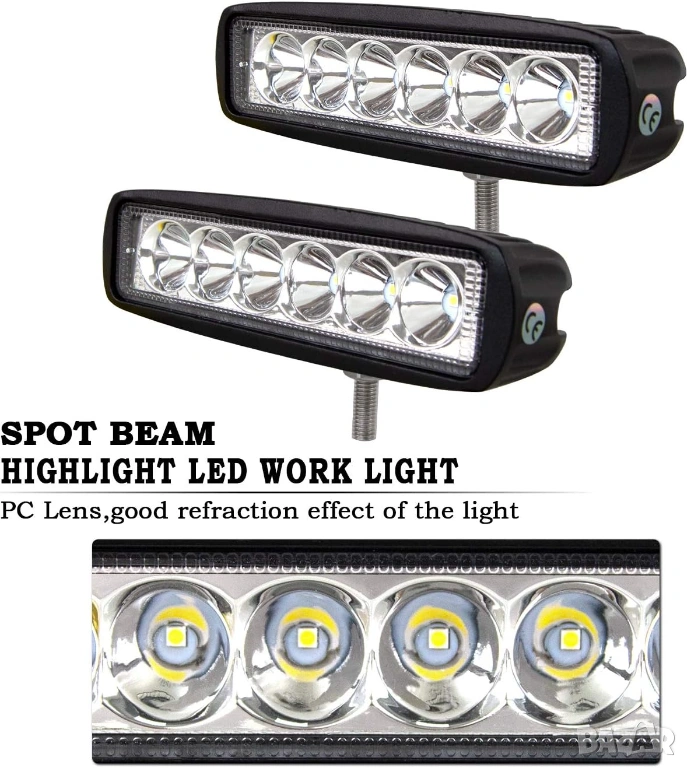 - Супер ярък: 30-градусов насочен лъч, цветна температура 6000k ви осигуряват комфортно и безопасно шофиране. Универсален за 12v и 24v захранващи източници. Всеки LED светлинен модул е проектиран за ниска консумация на енергия и дълъг живот (30 000 часа).