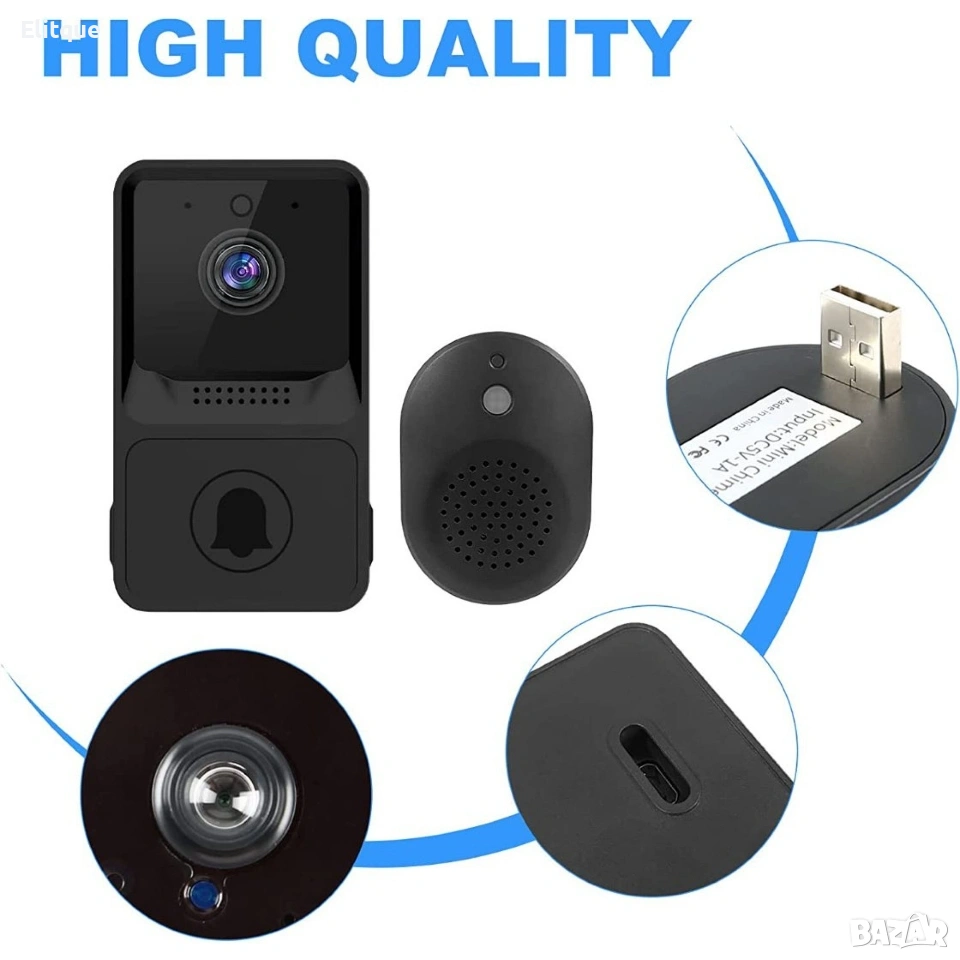 Благодарение на безжичната Wi-Fi технология, интелигентният звънец позволява гледане от разстояние и разговори с хората пред входната врата. Вграденият сензор за движение ви позволява автоматично да записвате видео, което след това може да възпроизведете на екрана на вашия смартфон.