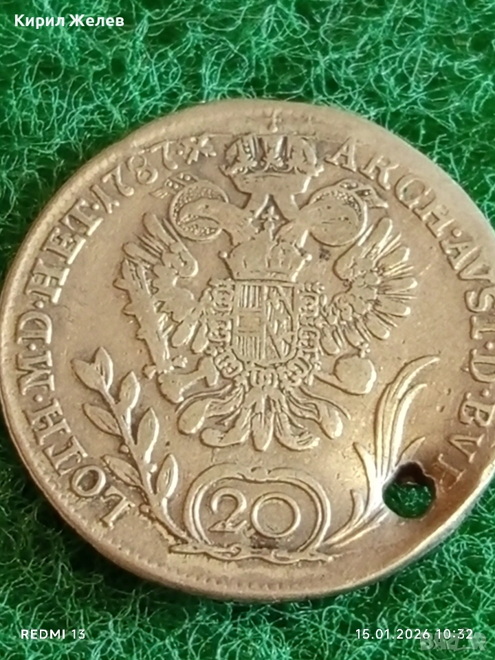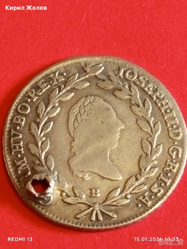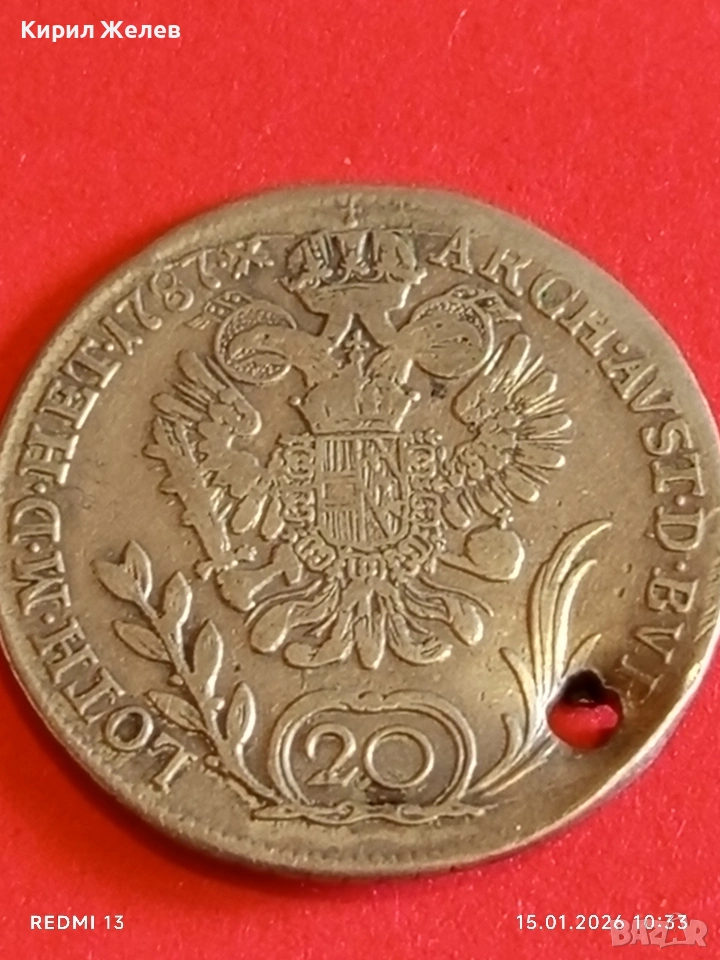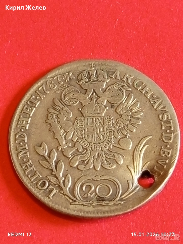 Сребърна монета 20 кройцера 1787г. Йозеф XIV Австрия за КОЛЕКЦИЯ 53011 → Обява 53105991