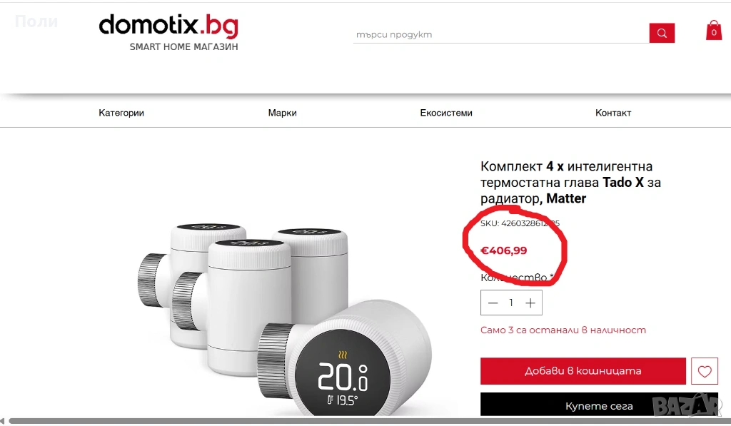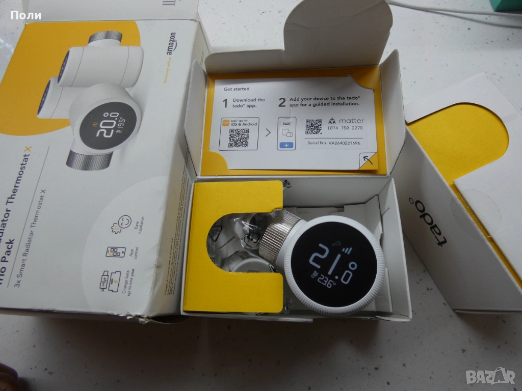 Комплект 3 x интелигентна термостатна глава Tado X за радиатор, Matter.