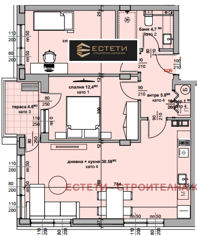 🏡 Тристаен апартамент състоящ се от: антре, дневна с кухня, спалня, баня с тоалетна. Квадратура - 103 кв. м.