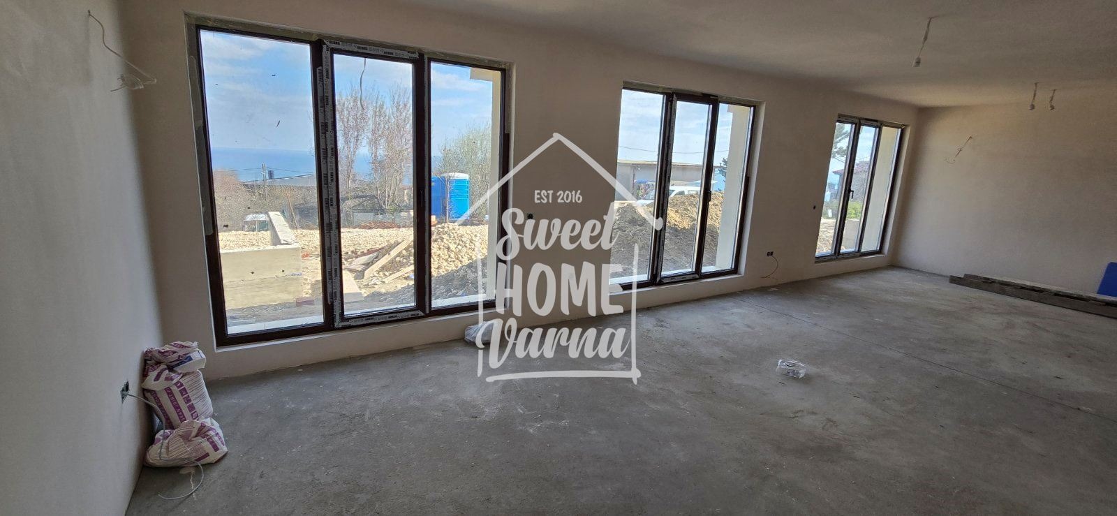 Екипът - Sweet Home Varna Ви предлага нова и модерна триетажна къща с гледка море от кота нула в м-ст Акчелар. С отделен самостоятелен двор с идентификатор, с две паркоместа, с отделна септична яма. Достъпът до нея е по бетонов път. Къщата е с РЗП: 240 кв.м и дворно място - 520кв.м. Разпределение: Първи етаж / сутерен с естественна светлина /:едно голяма помещение / маза/ 80 кв.м., втори етаж / партер/ : просторна дневна с кухненска част -55 кв.м, тоалетна, веранда, коридор и вътрешно стълбище към третия етаж. Трети етаж: коридор, три спални, две бани с тоалетна, килер / дрешник, общ балкон с излаз на него от трите спални. Изолацията на къщите е с 15 см стиропор. Водата в комплекса идва от два сондажа на 3 къщи има по 1 сондаж. Няма такса поддръжка, единственият общ разход за къщите ще е помпата за сондажа, нейната поддръжка и електричество. Разрешение за ползване, Акт 16 има от август 2025 г. Местността се отличава с тишина, спокойствие, чист въздух и простор, същевременно с бърз и лесен достъп до всички точки на града. За допълнителна информация и огледи цитирайте код: 4477 на тел.: 0895803009 Мария Лечева.