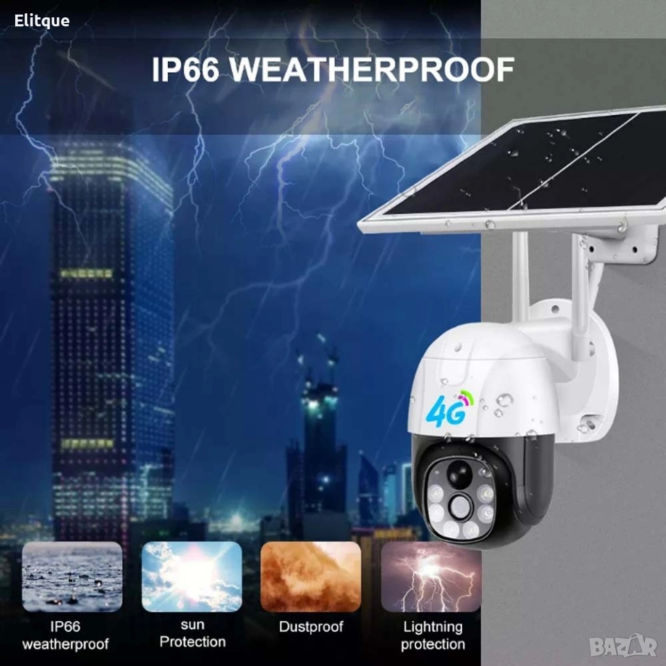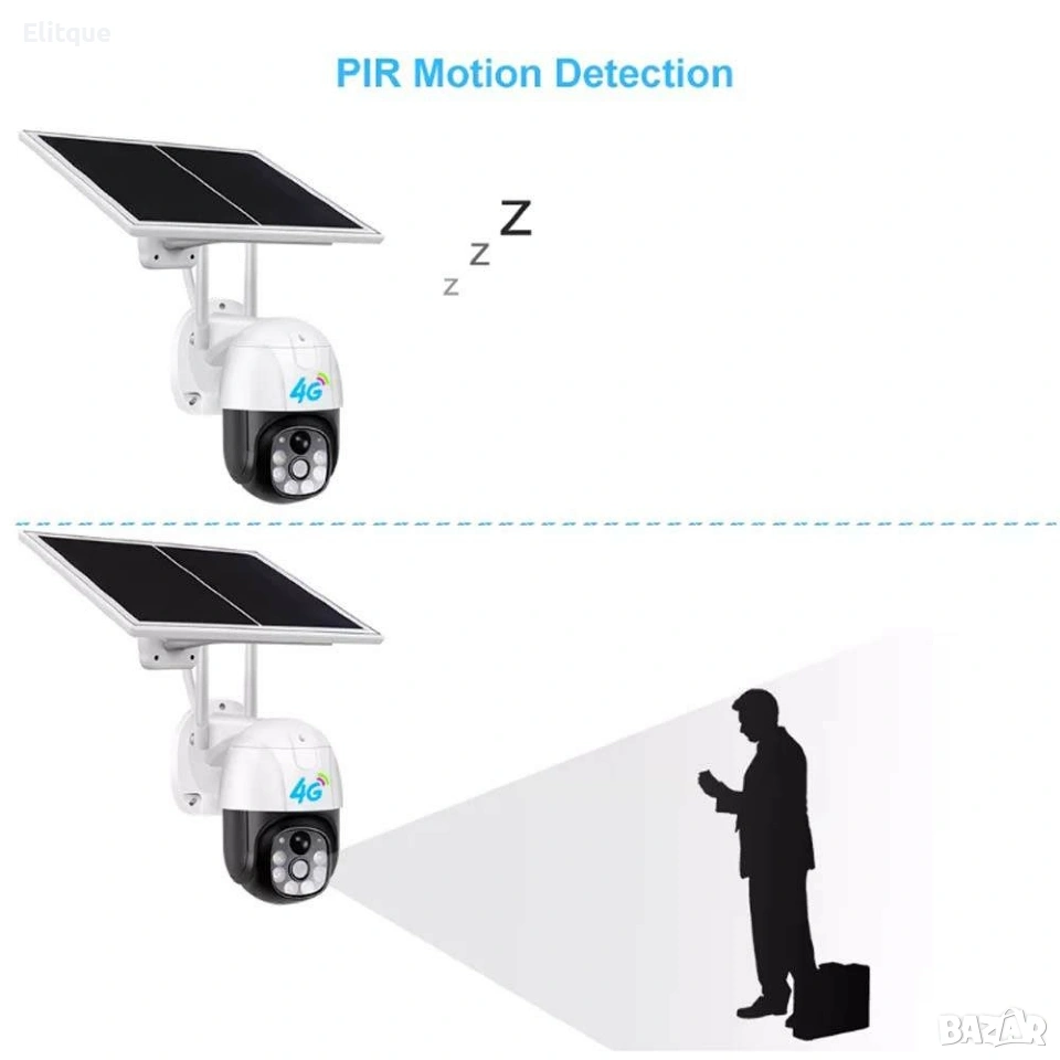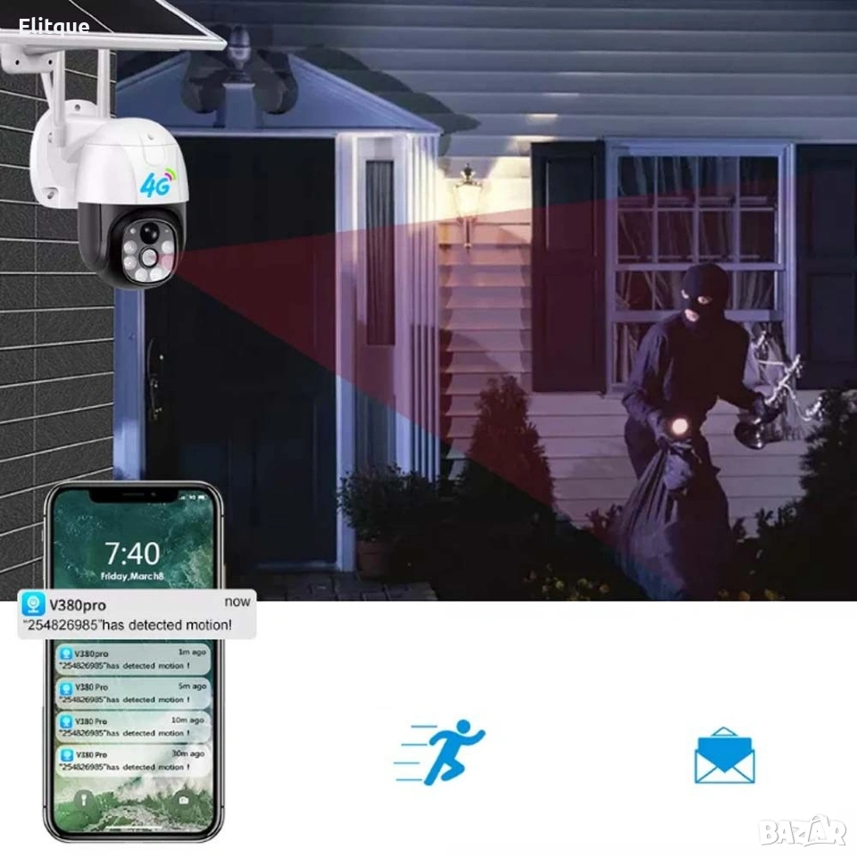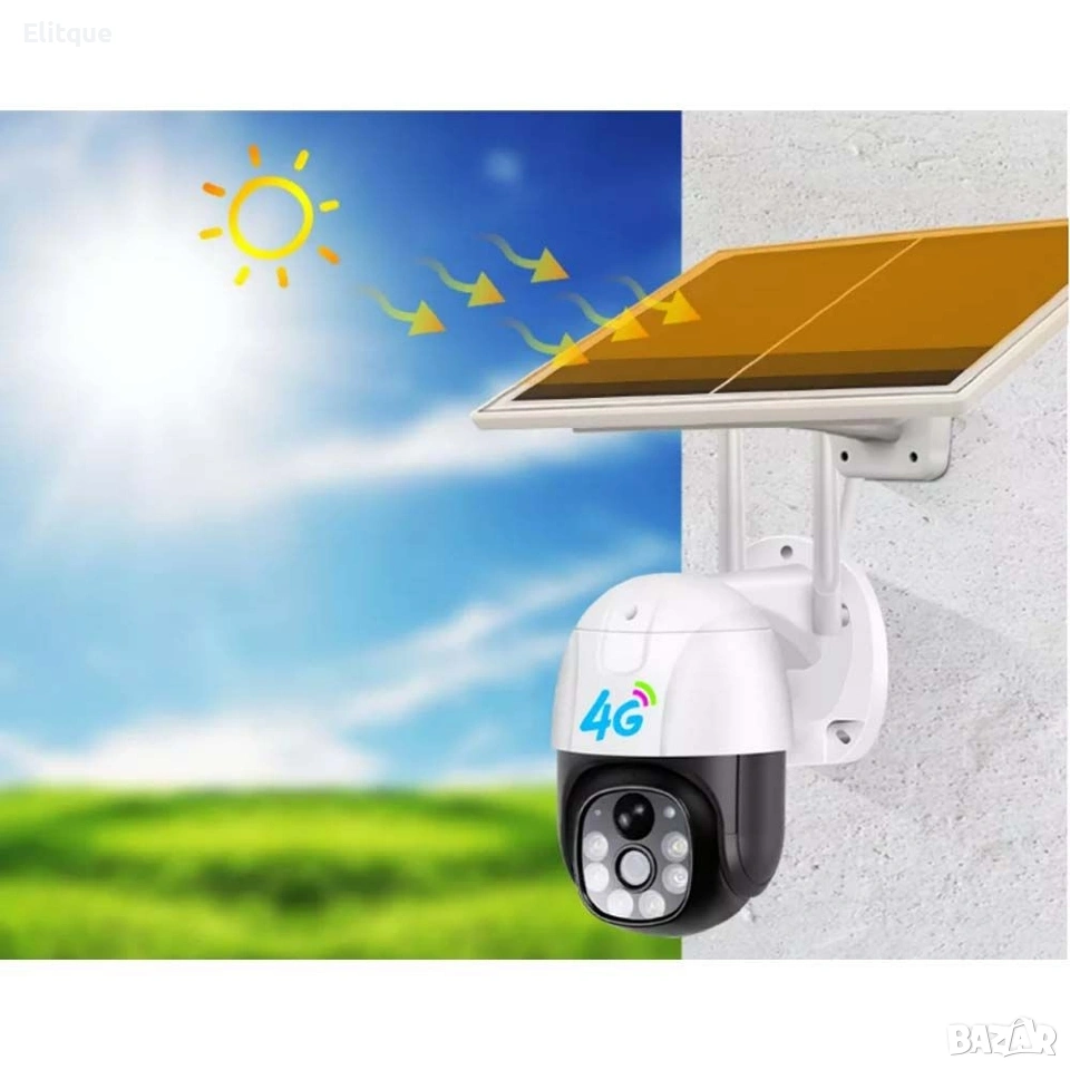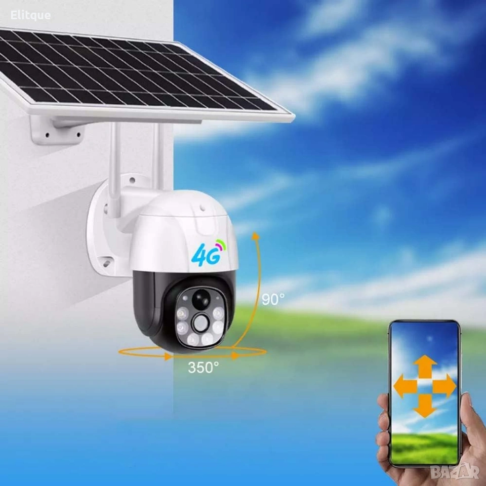 Куполна камера със соларен панел и безжична 4G връзка - 6LED с елегантен дизайн, качествена картина с 4 мм фокусно разстояние и запис директно върху карта памет. Камерата може да се завърти на 350 градуса хоризонтално и на 90 градуса вертикално. Чрез мобилният си телефон можете да контролирате ъгъла на въртене на лентата. Камерата е с вградената Li-ion батерия, която се зарежда от соларния панел. Изключително лесна за инсталация и употреба. Соларният панел може да бъде демонтиран от камерата и поставян на място с по-голям достъп на светлина. Камерата е отлично решение в изграждането на видеонаблюдение в големи търговски обекти, жилищни кооперации, офис сгради, хранителни магазини и други частни обекти. Поради характерната си форма на полусфера камерата е изключително елегантна и се вписва много добре в интериора на всяко помещение. Характеристики: Приложение: V380PRO; Пиксели: 2MP; Обектив на камерата: 4 (mm) HD; PIR сензор; Висока разделителна способност 1080p FULL HD; Мрежова връзка: безжична 4G - SIM карта (камерата работи със SIM карта към всички български оператори) и също така се адаптира към RJ45 мрежова връзка (мрежов порт); Двупосочно аудио; Откриване на движение и аларма; Функция за нощно виждане; Поддръжка запис на SD карта (макс. 128GB) и лесно възпроизвеждане; Безплатно приложение за отдалечен изглед, съвместимо с Android, IOS телефон; Влагоустойчив пластмасов корпус на камерата – IP66; Светодиоди: 2 бели и 4 инфрачервени за нощно виждане; Разпознаване на движение с известия; Работна температура: -10 ℃ + 50 ℃; Мрежов протокол: поддържа TCP/IP, UDP, HTTP, DDNS, DHCP, FTP, NTP; Режим на захранване: соларен панел + 3.7V 18650 батерия; Захранване: DC5V2A. Комплектът включва: 1 х камера; 1 х соларен панел; 1 х регулируема скоба за соларния панел; 1 х USB кабел; 1 х крепежни елементи; 1 х ръководство на потребителя.
