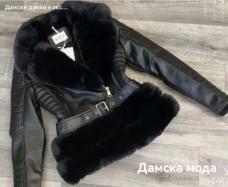 Намаление! Дамско кожено яке с пух → Обява 53106490