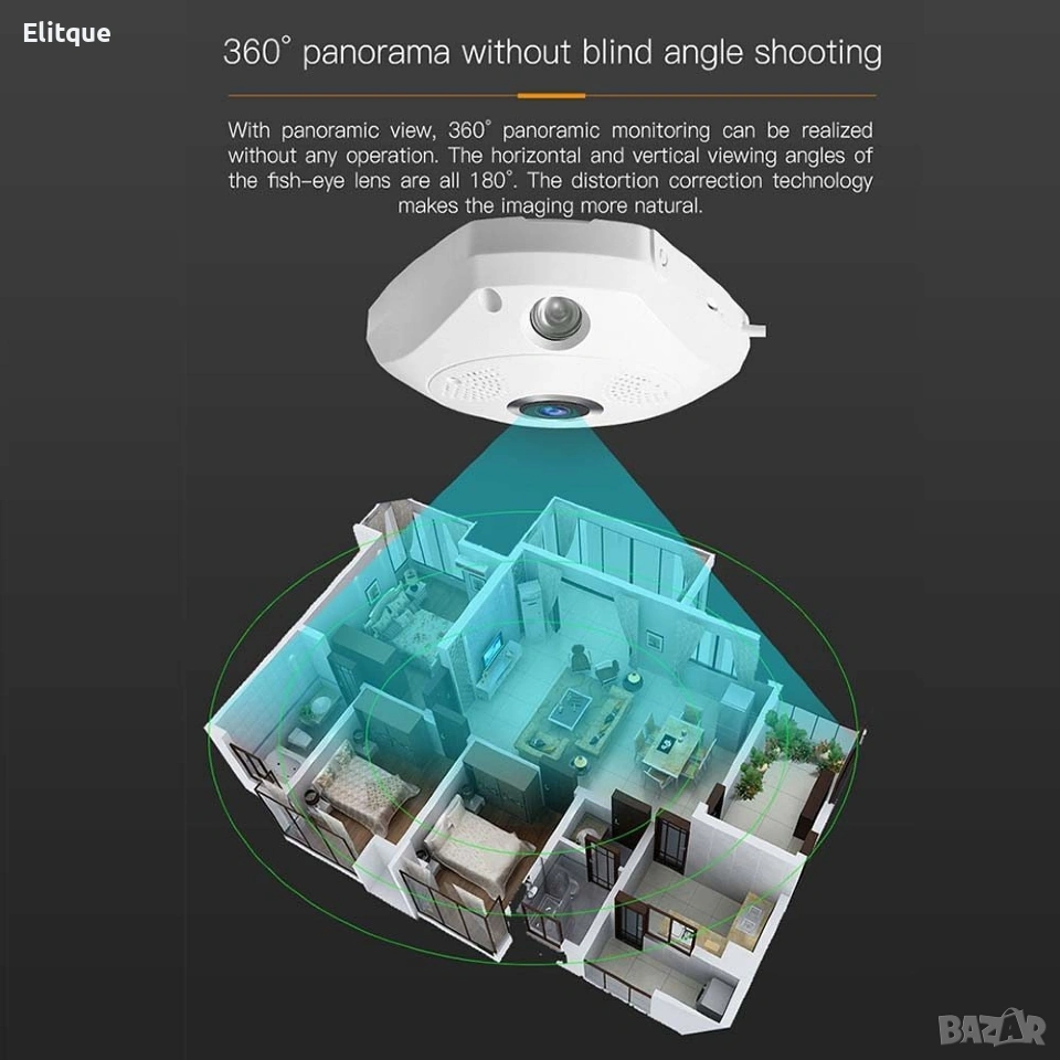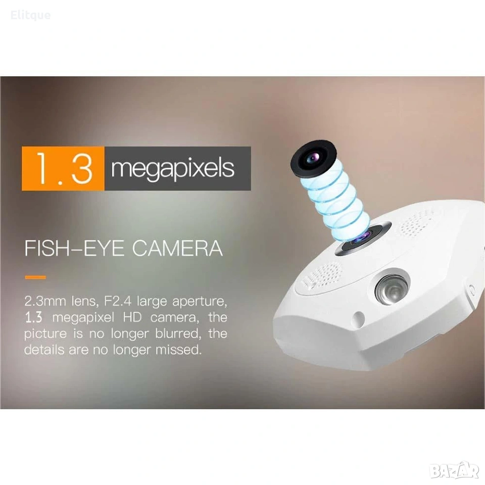 VR- 1,3MP 3D камера с инфрачервено нощно виждане и възможност за предаване на множество екрани е доброто решение да пазите дома си от крадци и да го наблюдавате 24 часа в денонощието. Камерата предава изображения и видео, дори през нощта благодарение на инфрачервените си сензори. Свързва се безжично към Wi-Fi. Може да се съвместява със смартфона ви, за да преглеждате през него на живо дома си (съвместими телефони Android, iPhone и други). Гледката от камерата е панорамна на 360 градуса, пространството, което заема от хард диска ви е минимално и поддържа няколко души, като опция за преглеждане на изображенията и видеата. Камерата е съвместима с карта памет Micro SD с максимален капацитет от 32G (не се включва в комплекта). Характеристиките на интерфейса са RJ45 10M/100M. Прихваща на разстояние до 15 метра. Захранва се с DC 12V/1A. За да функционира е нужно да инсталирате приложението VR CAM на смартфона си. Работи с безжичен интернет протокол и автоматично превключва от дневен на нощен режим. Картината е с параметри 1,3МР и резолюция от 1280 по 960. Лещата на камерата е 44 милиметрова, а илюминацията е сведена до минимум. Видеото е с параметри Н.264, HD, 960P. Може да закрепите камерата за стена или таван, като работната и температура е от -10 до +50 градуса, при влажност 95%. Кабела на камерата е с три изхода - за мрежови интерфейс, за захранването и за нулиране. ТЕХНИЧЕСКИ ХАРАКТЕРИСТИКИ Име на продукта: CCTV Wi-Fi 1,3MP 3D камера с инфрачервено нощно виждане и изображение на 360 градуса Технология: Инфрачервена Сензори: CMOS Ъгъл на разгръщане: 90 градуса Поддържани мобилни системи: Phone OS, Android Размери на камерата: 154 на 165 на 38 милиметра Поддържани операционни системи: Windows XP/ Vista/ Win7/ Win 8 Начин на закрепяне: На стена или таван Начин за алармиране: Изпращане на изображение Консумация на енергия: 3,5 Вата Вид: Мини камера IP Мрежови интерфейс: Wi-Fi/802.11/b/g Леща: 44мм леща Формат за видео компресиране: Н.264 Специални екстри: Влагоустойчива Захранване: DC 12V Свързване: Безжична мрежа Дистанция на прихващане: До 15 метра Видео: HD 960P Изображение: 1,3MP, 1280 X 960P Работна температура: От -10 до +50 градуса Размери на пакета и тежест: 20 на 20 на 20 сантиметра; 0,500 килограма КАКВО ЩЕ НАМЕРИТЕ В ОПАКОВКАТА 1 брой CCTV Wi-Fi 1,3MP 3D камера с инфрачервено нощно виждане и много екранен модел с окабеляване 1 брой ръководство за употреба
