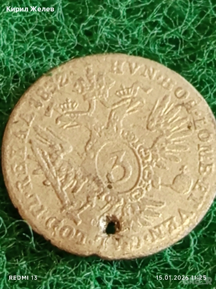 Сребърна монета 3 кройцера 1832г. Франц втори Австрия за КОЛЕКЦИЯ 52943 → Обява 53106673