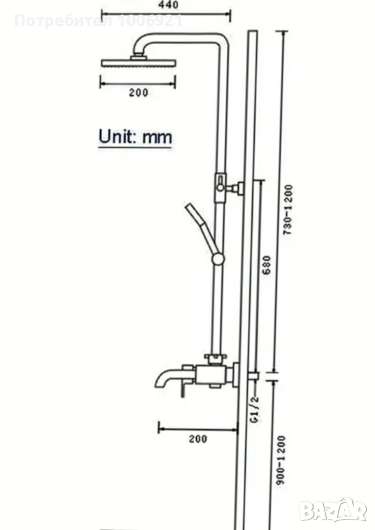 Душ система за баня , цвят rose gold mirror, съставена от душ глава и подвижен душ. Размерите на душа и тези за монтаж са посочени в снимките.
