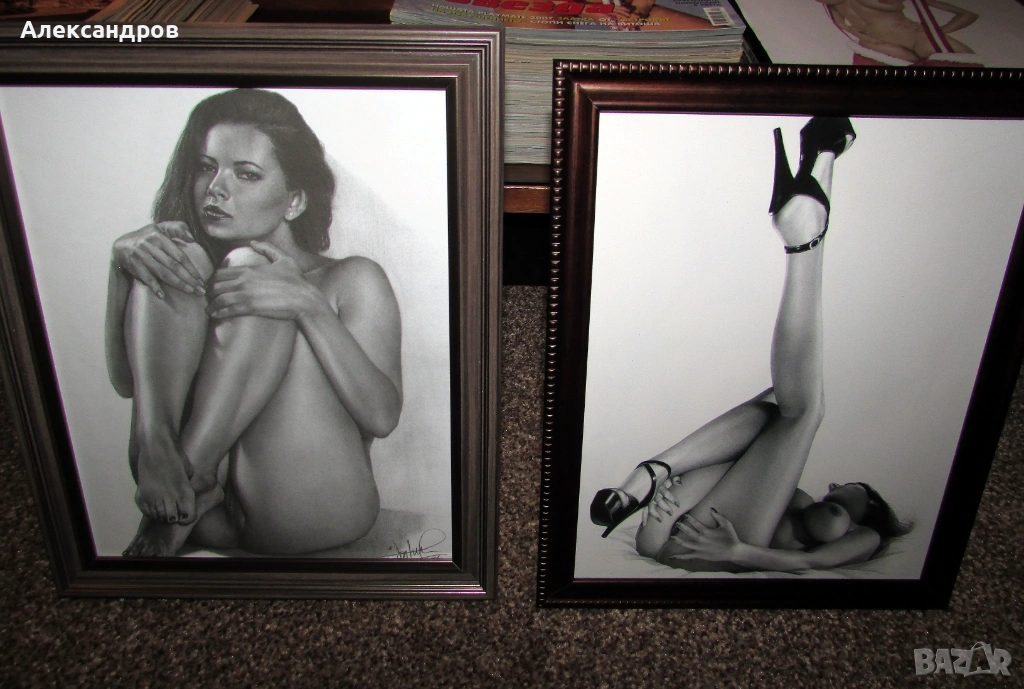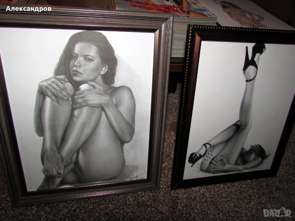 Две еротични картини на голи жени 28х24см → Обява 53106795