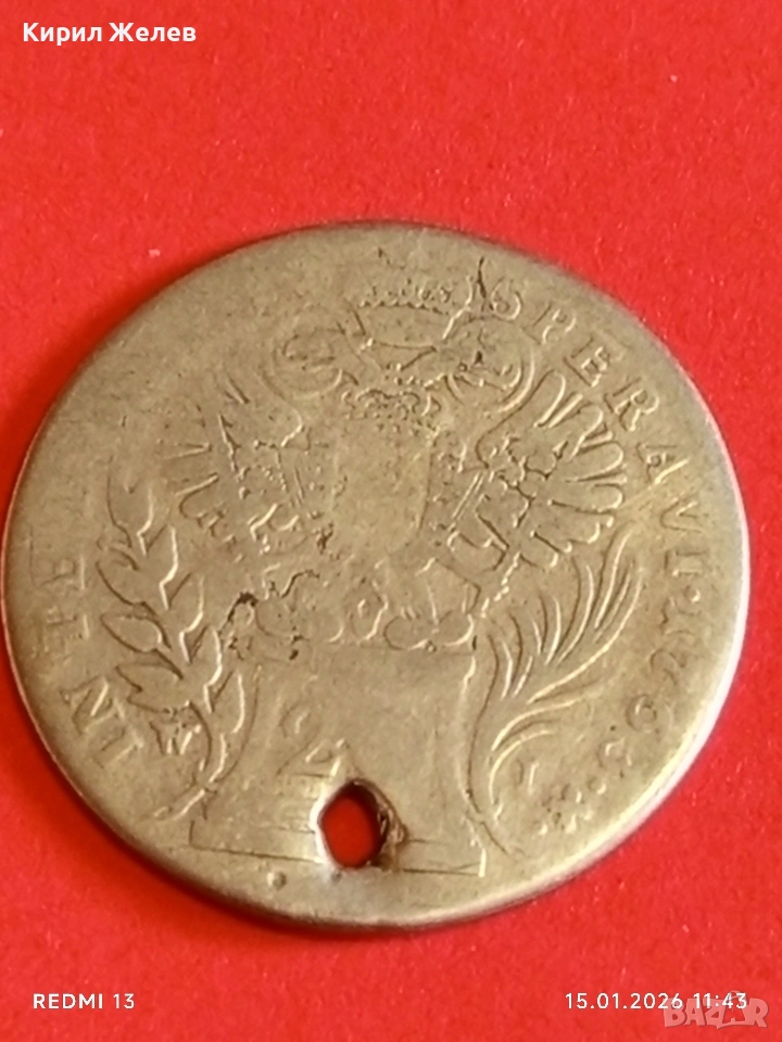 Сребърна монета 20 кройцера 1763г. Франц първи Австрия за КОЛЕКЦИЯ 53009 → Обява 53106997