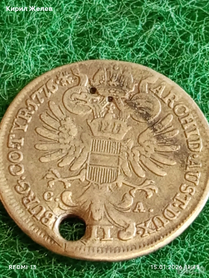 Сребърна монета 7 кройцера 1776г. Мария Терезия Австрия за КОЛЕКЦИЯ 52884 → Обява 53107044