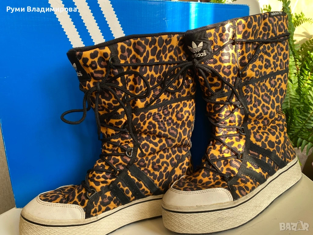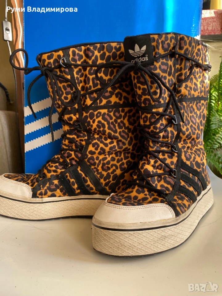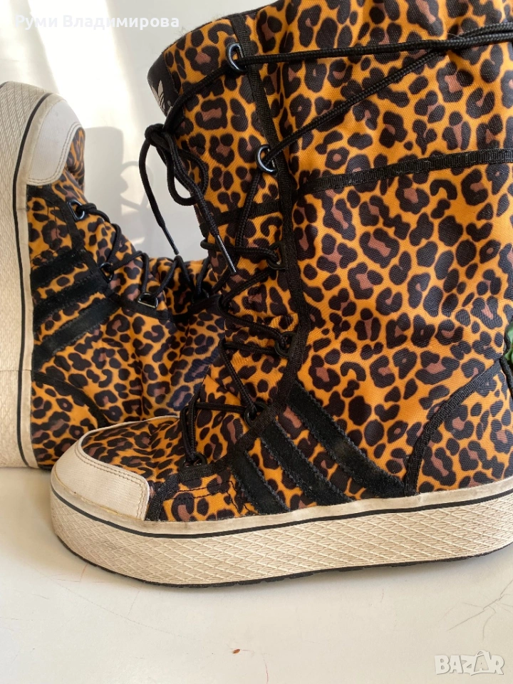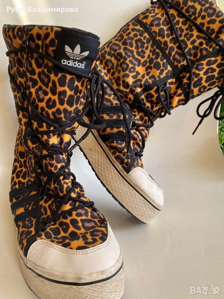 Апрески Adidas N 39 1/2 в тигров принт в отличмо състояние, подплатени с черен полар отвътре, със завързване за голям сняг и преспи, доставка с Еконт.
