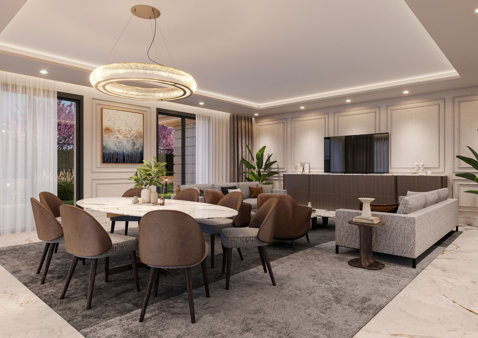 Общи части: Луксозно изпълнение с настилки от мрамор Dyno, стени с винилови тапети Vescom и тавани с корнизи със скрито осветление. За входните лобита са предвидени настилки от екзотичен естествен мрамор, облицовки от HPL ламперии, напълно оборудван и обзаведен кът за отдих и срещи с камина и мека мебел.