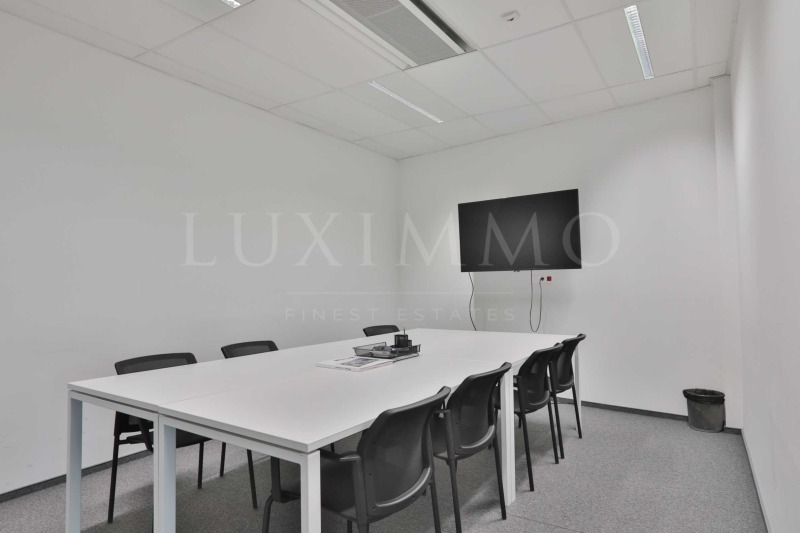 Предлага се напълно обзаведен с маси, бюра, столове и шкафове.