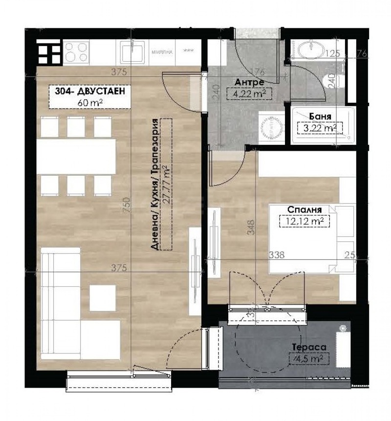 дневна с кухненска част;