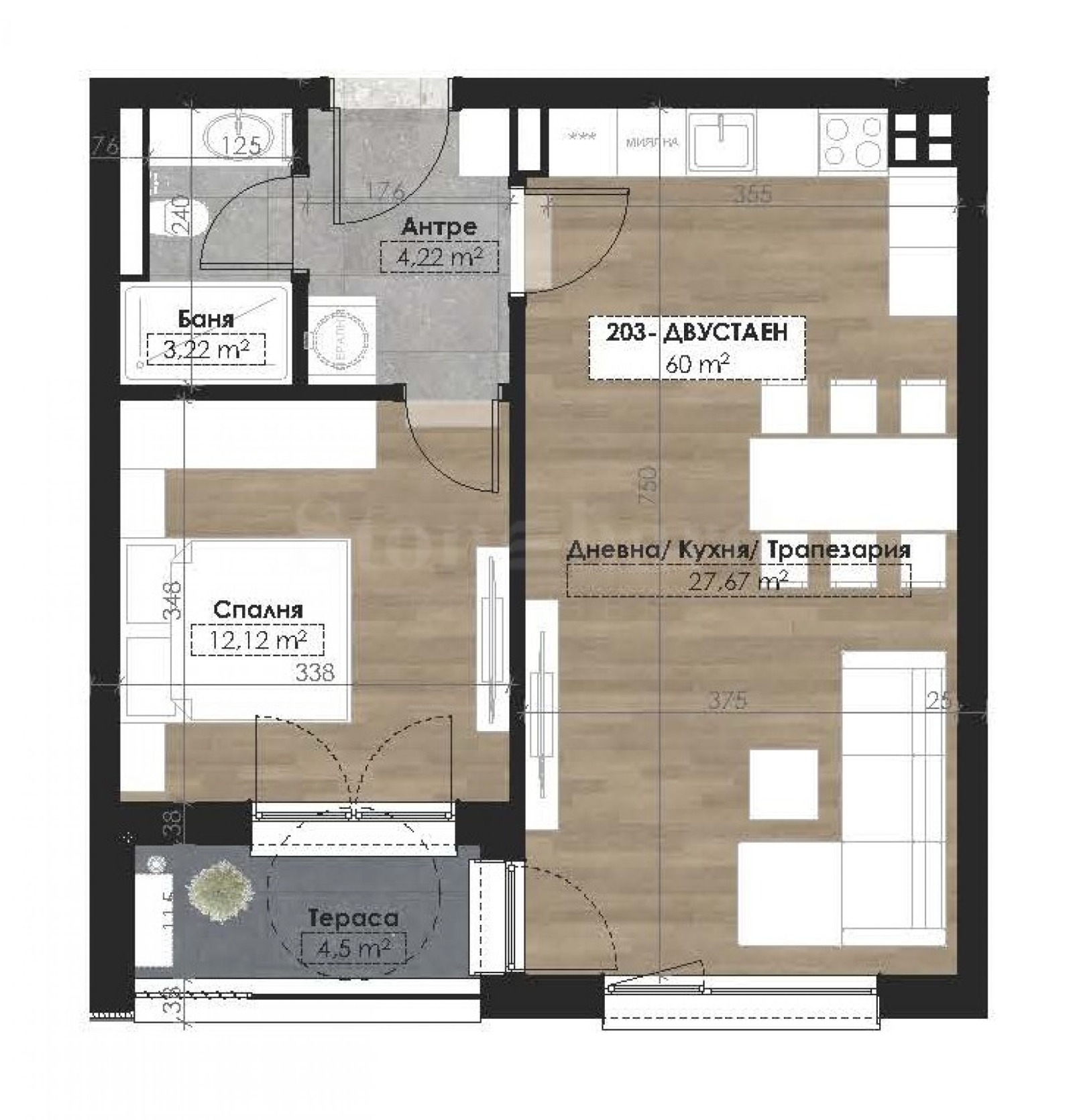 дневна с кухненска част;