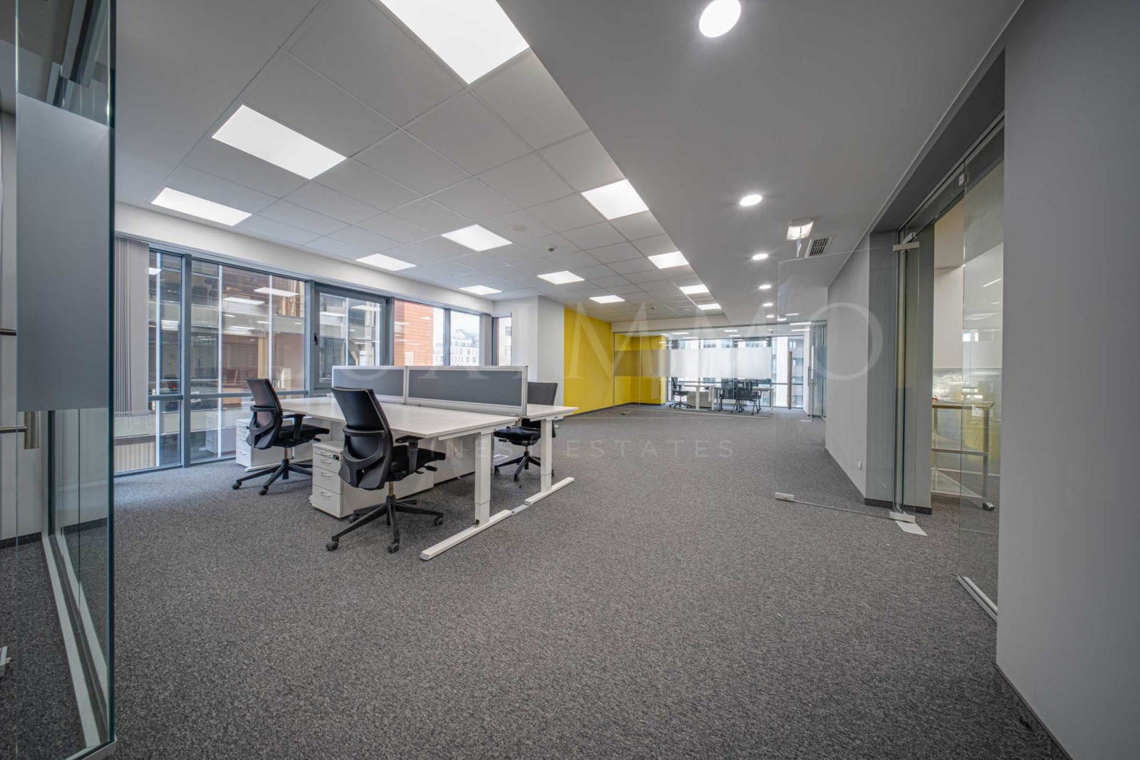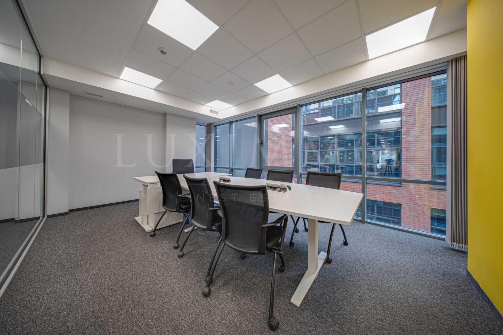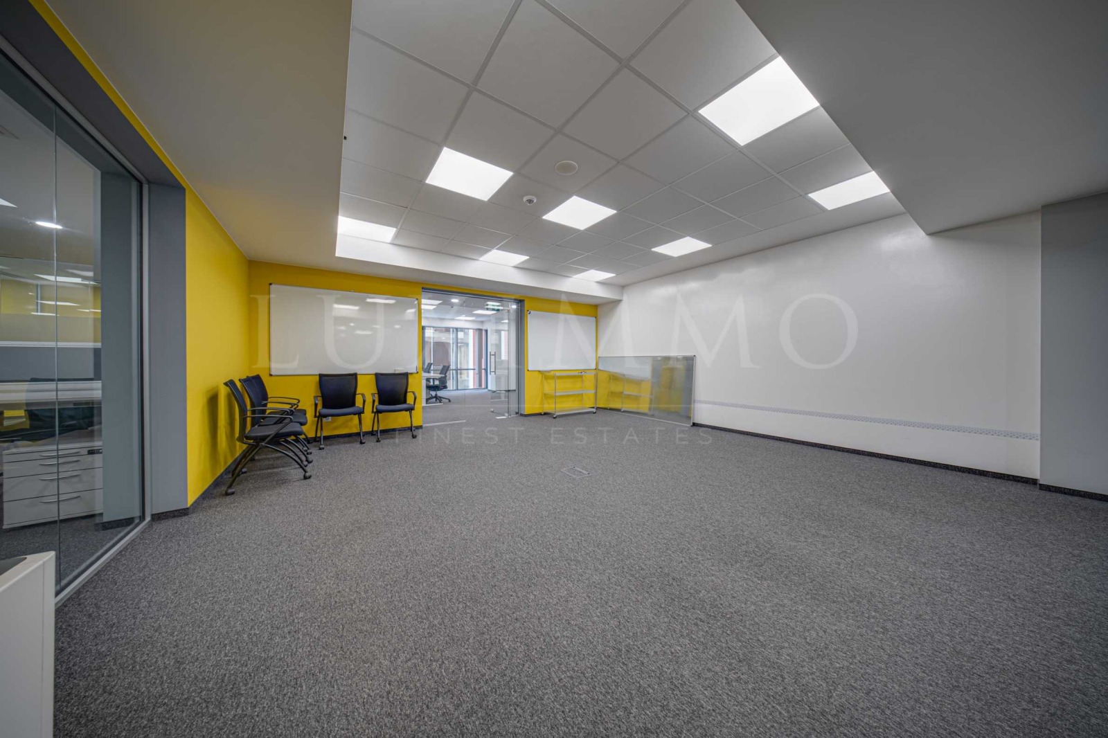 Офисът разполага с голяма заседателна зала, втора стая за срещи, кухня, два кабинета, две големи 'open space' работни помещения с възможност за промяна в разпределението, сървърна стая, тераса и допълнителна стая за кухня;