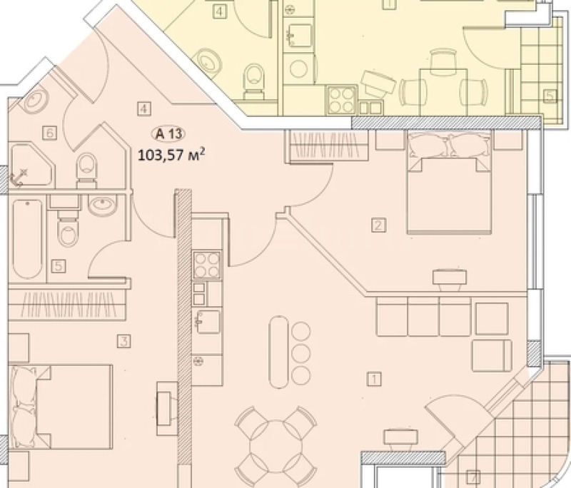 Апартаментът се намира на 3-ти от 7 етажа и е с площ от 103.57 кв.м. Предлага се качествено завършен по БДС, с висок клас немска дограма Kömmerling, с отлична шумо- и топлоизолация, и с отопление на ТЕЦ.