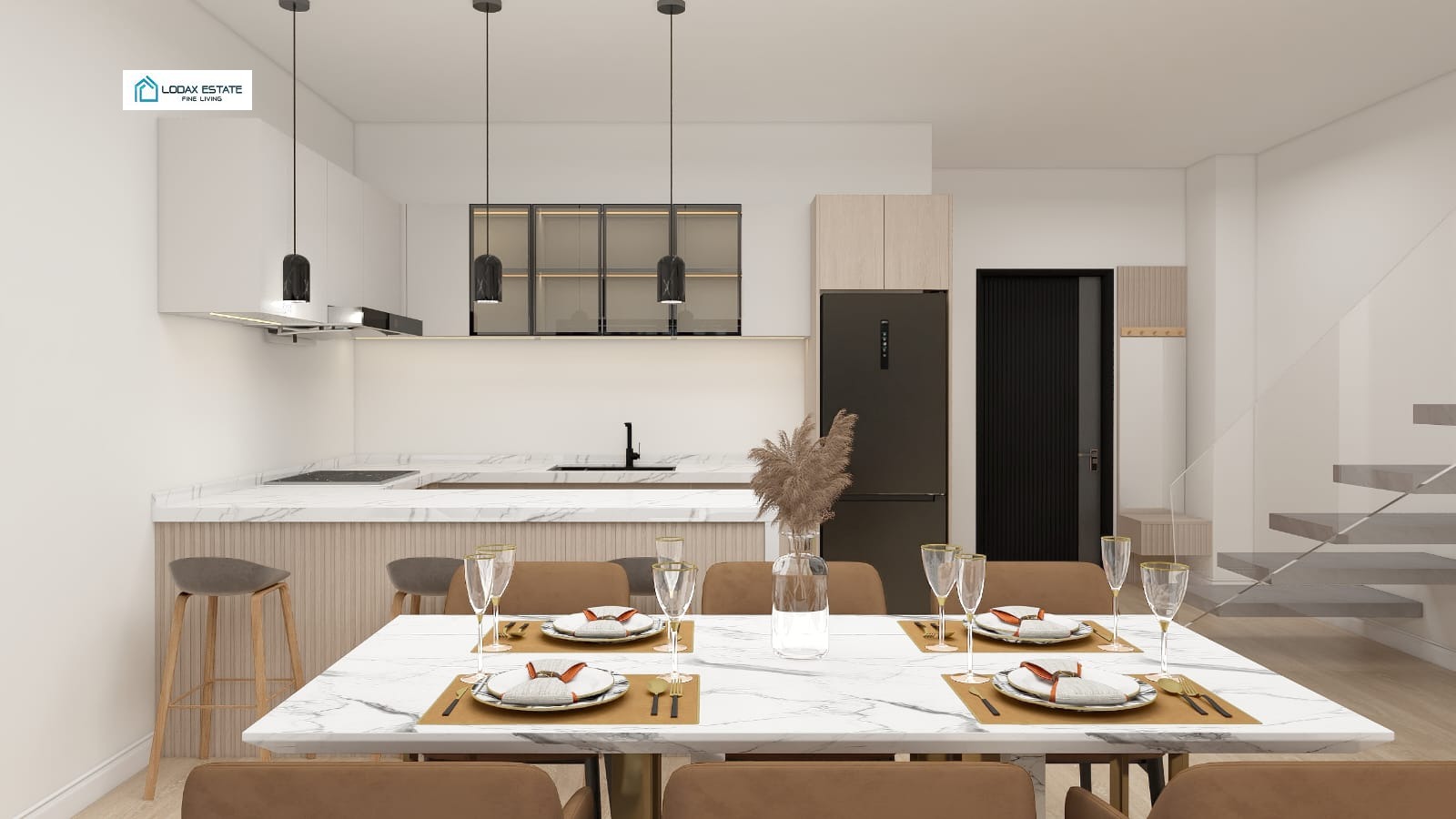 Този елегантен имот предлага обща площ от 240 кв.м., внимателно проектиран за комфорт, пространство и функционалност. Градската къща разполага с три просторни спални, идеални за семейно живеене, ваканционен дом или луксозен инвестиционен имот.