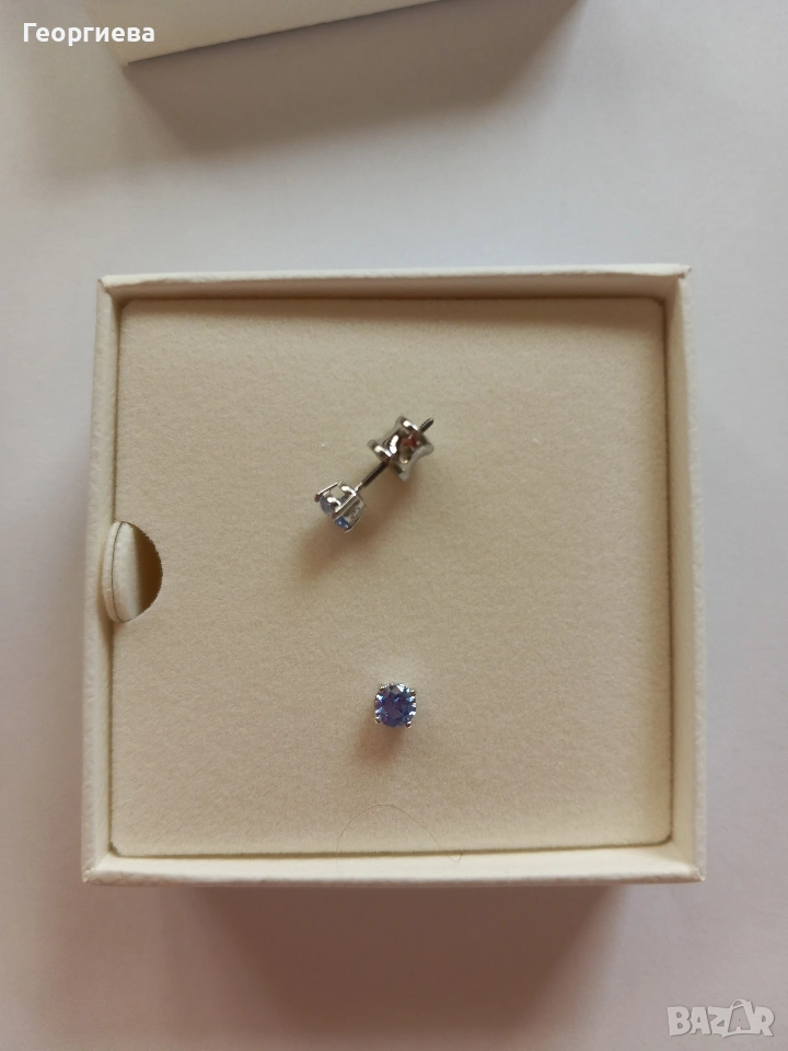 Обеци Swarovski със син цирконий диам. 4 мм. Нови с подаръчна кутия. Доставка с куриерска фирма Еконт.