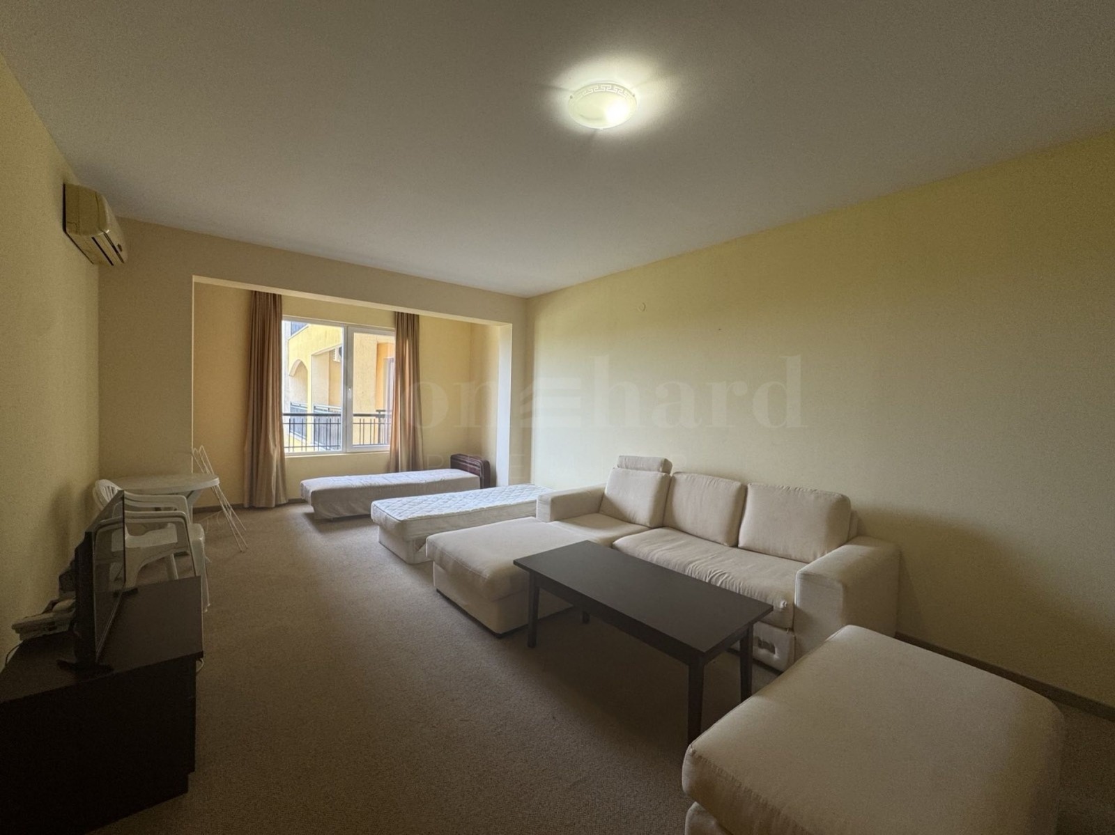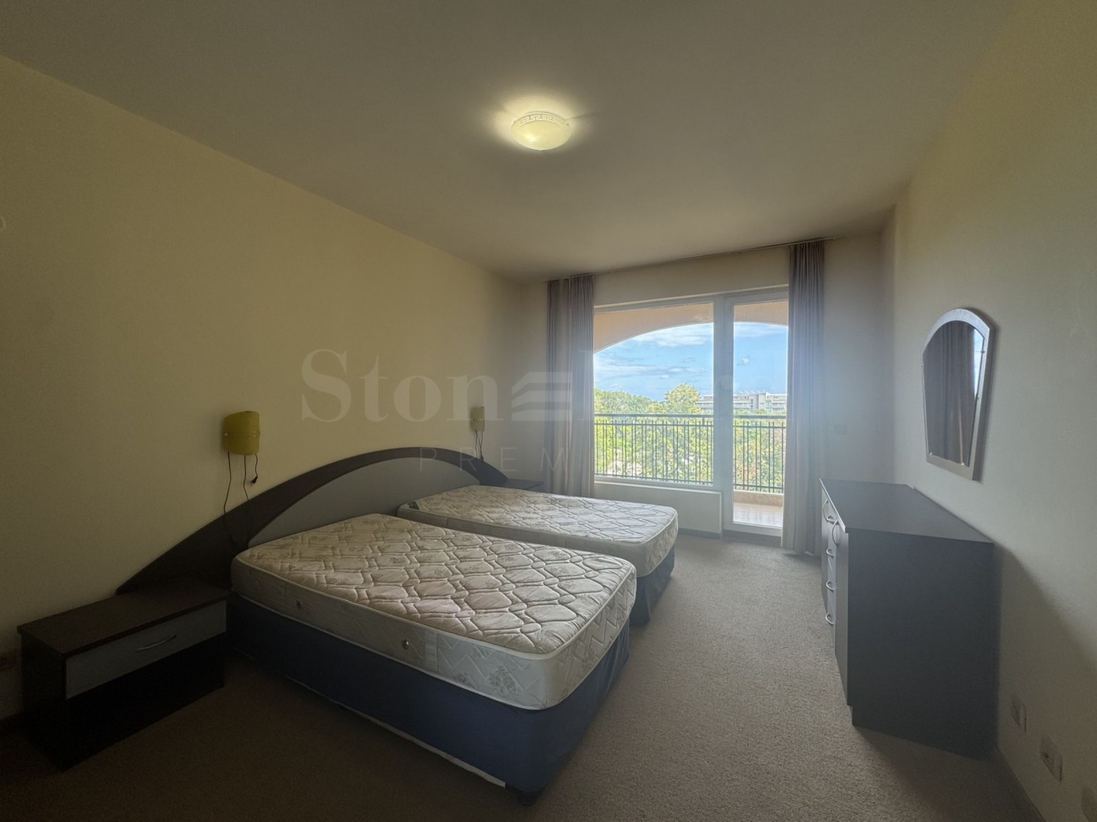 Апартаментът е просторен и светъл, обзаведен и оборудван с мебели и ел. уреди, готов за живеене или отдаване под наем.