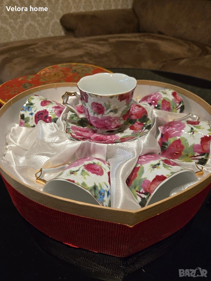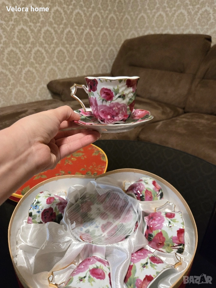 Уникален, порцеланов ЯПОНСКИ сервиз,една единствена бройка налична останала, от 6 чаши + 6 чинии за кафе.