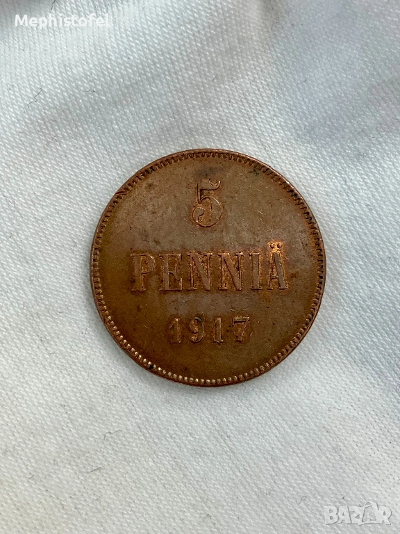 5 пени 1917 г, Финландия / Руска империя - стара медна монета