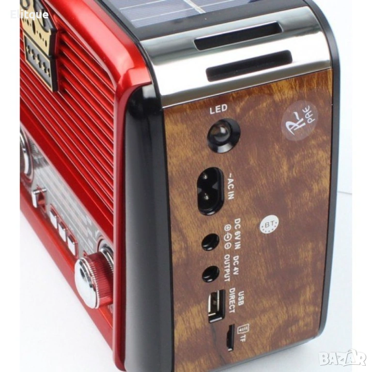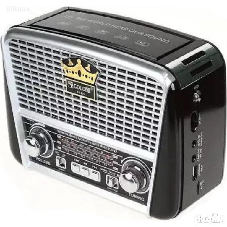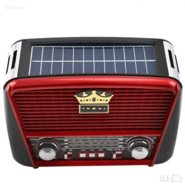 Радиоприемник марка Golon, модел: RX-455S. Той има стилен ретро дизайн. Вграден високоговорител в центъра (много силен звук). Вграден страничен фенер. Вградената батерия ще ви позволи да вземете със себе си на пътя, където няма изход, а слънчевият панел ще ви помогне да заредите тази батерия. Има и отделение за батерии. USB / SD слотовете ви позволяват да възпроизвеждате любимата си музика и аудио книги от флаш памети в MP3 формат.