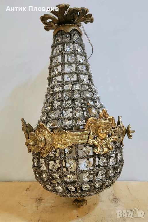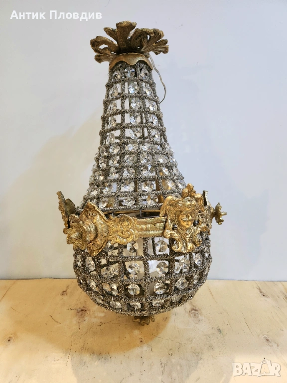 Изключителен полилей с каскаден дизайн, изработен от метал и кристални елементи, които създават великолепна игра на светлината. Съчетавайки изящество и блясък, този полилей е истински шедьовър, подходящ за украса на изискани интериори. С уникалната си форма и детайлна изработка, той придава луксозно излъчване и се превръща в акцент на всяко помещение.