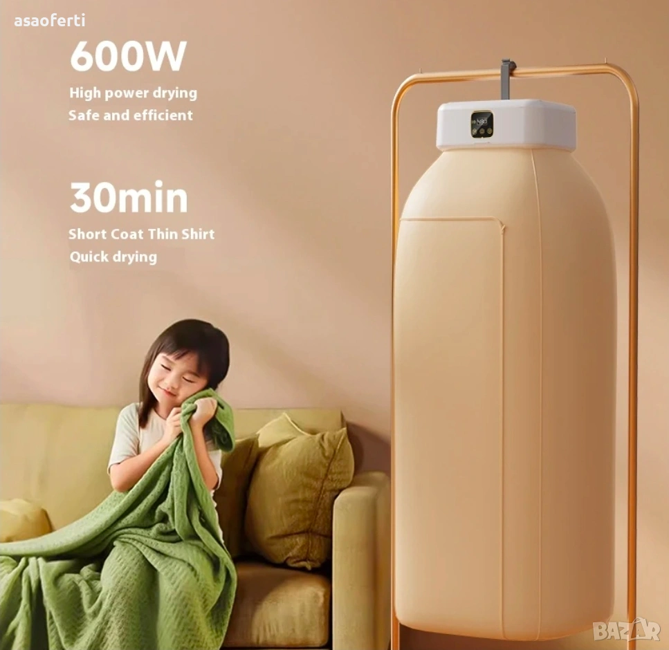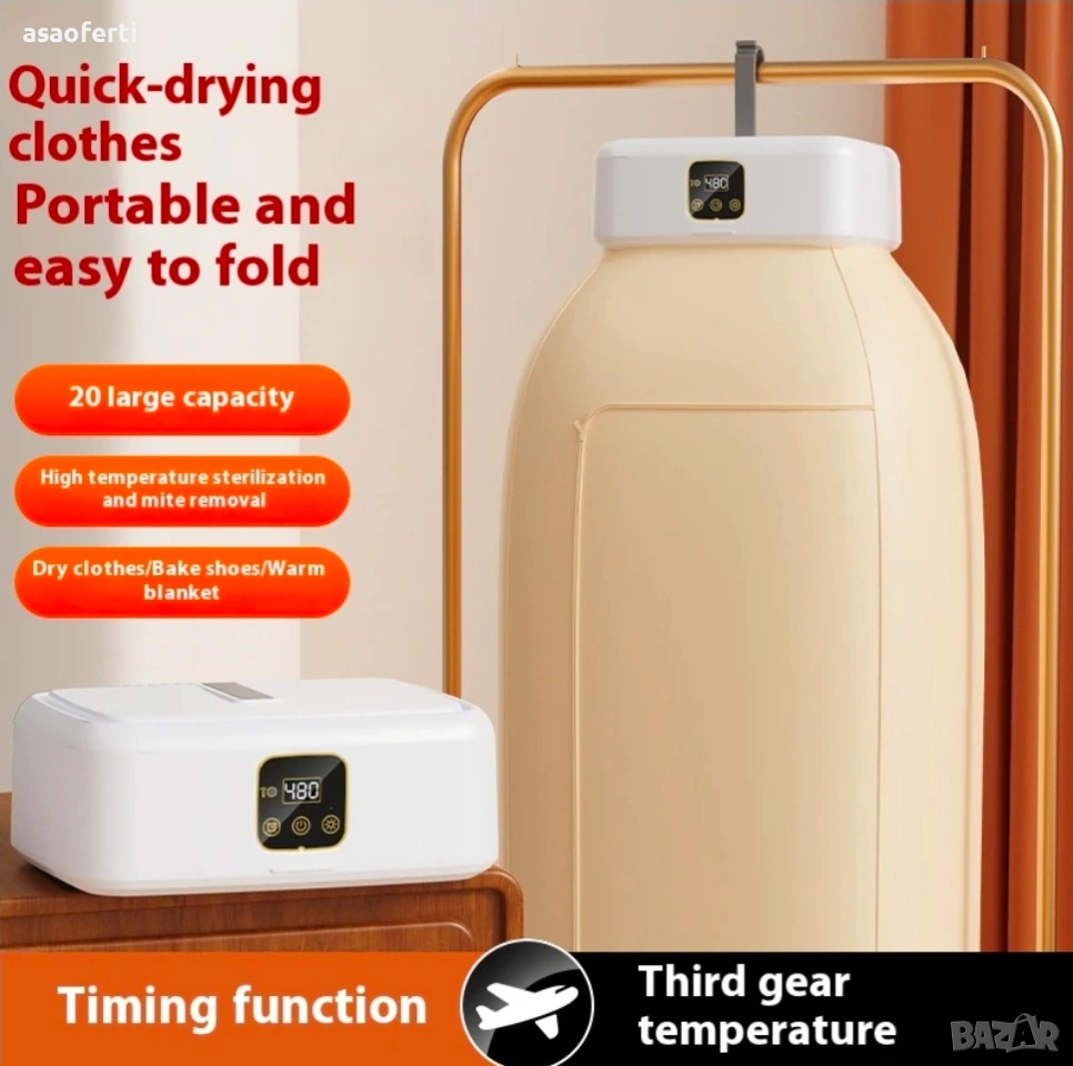 Предлагаме Ви иновативна преносима сушилня за дрехи (Portable Drying Machine), която е идеалното решение за бързо и ефективно сушене в малки жилища, при пътуване или в дъждовни дни. Компактният ѝ дизайн позволява лесно съхранение, когато не се използва.