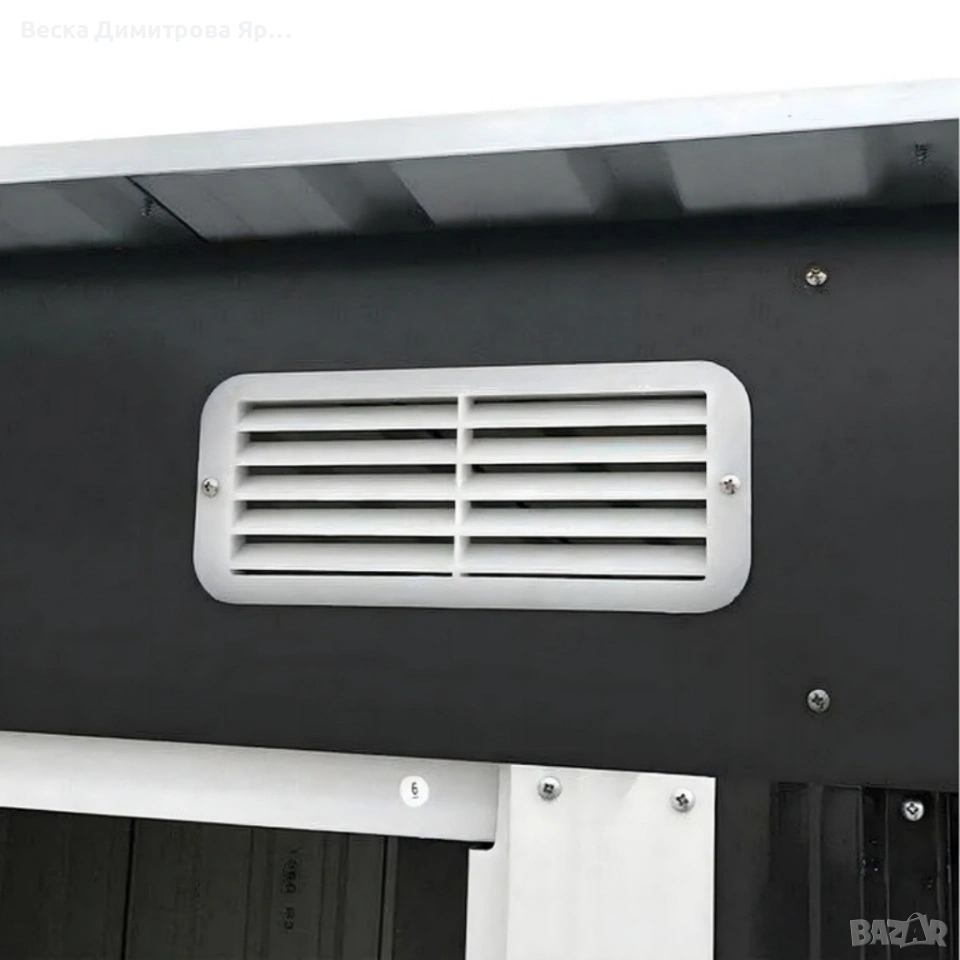 Тип: градински навес за съхранение; Материал на конструкцията: поцинкована стомана; Покриващ материал: поцинкована ламарина; Цвят: сив; Вентилация: 4 вентилационни решетки; Врати: двойни, с опция за заключване; Размери – Малък модел: Външни размери: 238 × 126 см; Обща височина: 181 см; Размер на вратата (В/Ш): 154 × 83 см; Размери – Голям модел: Външни размери: 277 × 299 см; Обща височина: 192 см; Размер на вратата (В/Ш): 165 × 99 см.