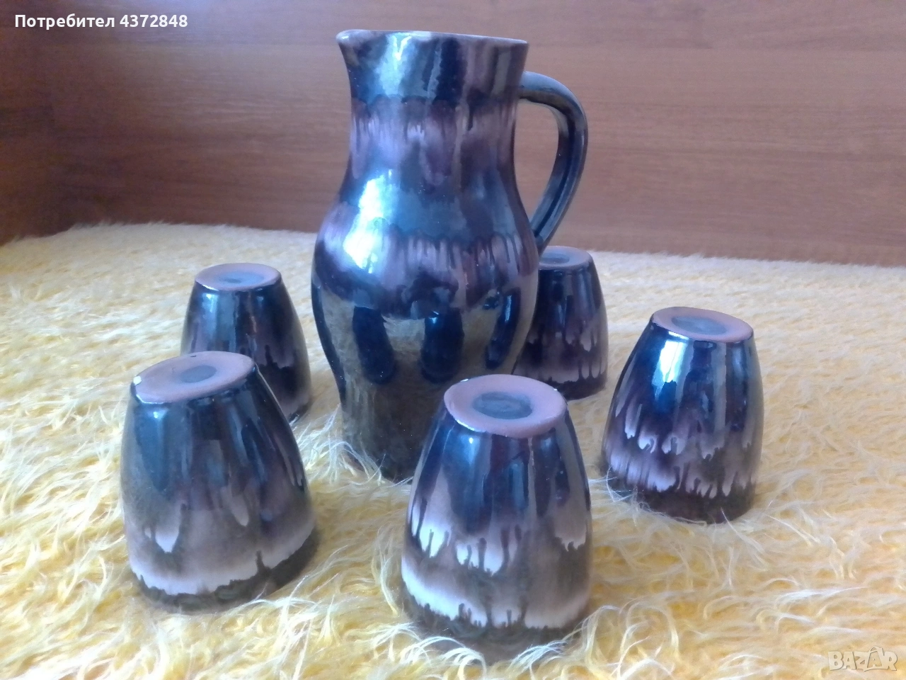 Сервиз за вино -кана 1 литър Сервиз за греяна ракия кана - 0,500л Може и за сувенир!!! 30 лв на брой