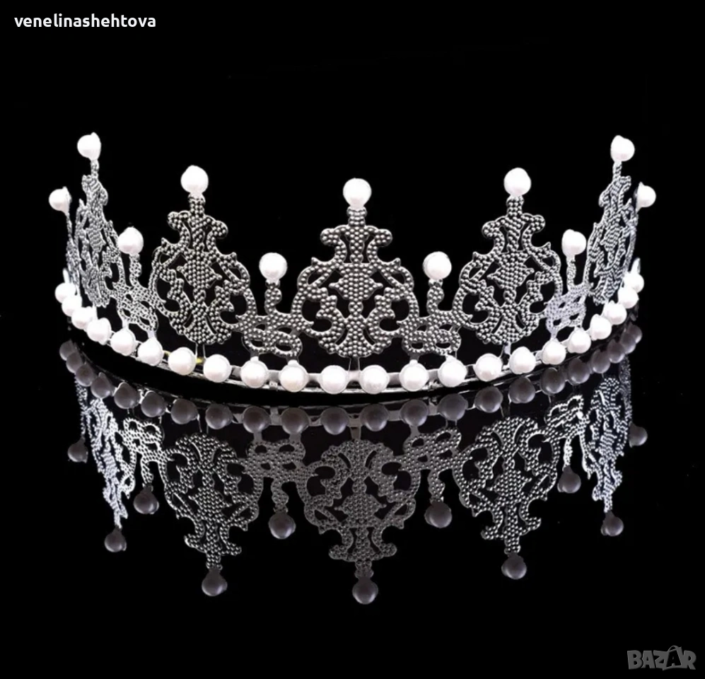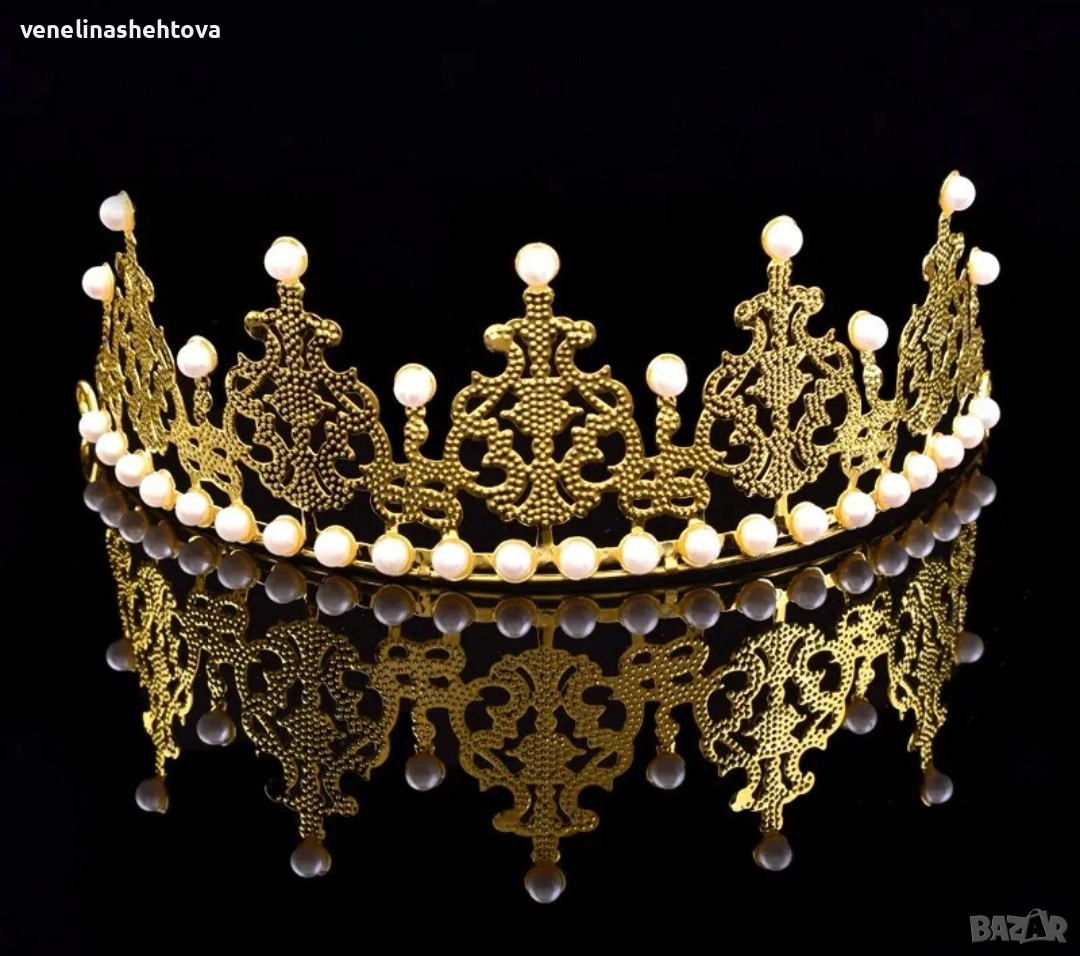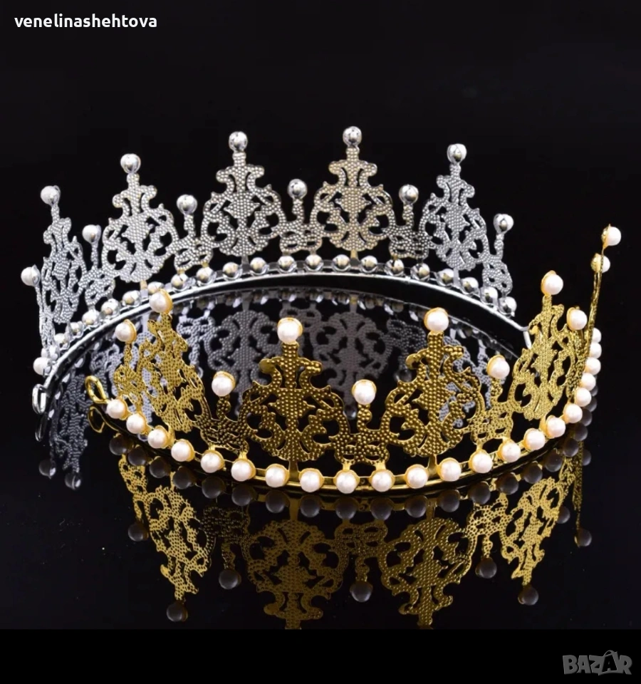 Голяма корона тиара златист сребрист цвят с перли за декорация на торта → Обява 53108813