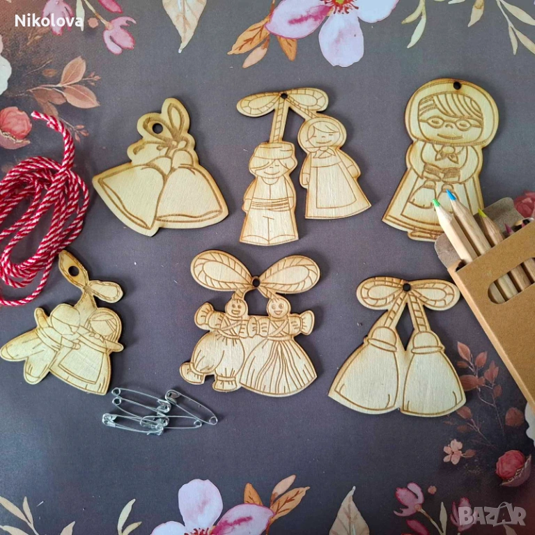 Комплект от 6 фигурки за оцветяване с ПОДАРЪК - Цветни моливи и безопасна игла