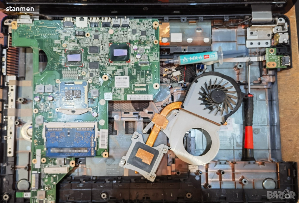 Чипсет: Intel Peak-M HM55 IMC. Дъното поддържа процесори Intel Core i7, i5