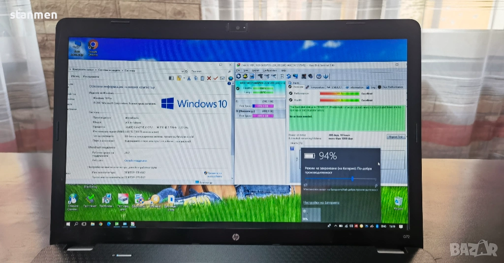 Продавам 17" лаптоп HP G72/4x2.27ghzThr/8gb/1Тb/HD5470/1600x900сKам/3чБат/DVDrw/Профилактиран