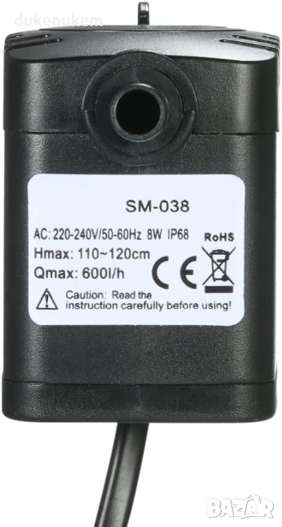 Потопяема водна помпа за аквариум и фонтан 600 L/H, 8 W