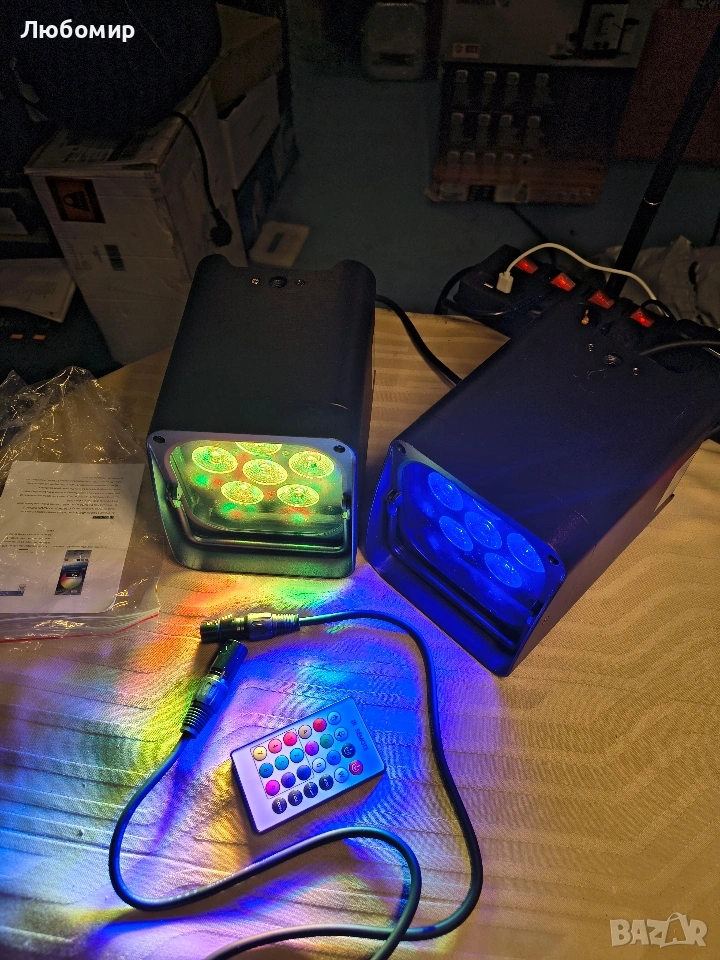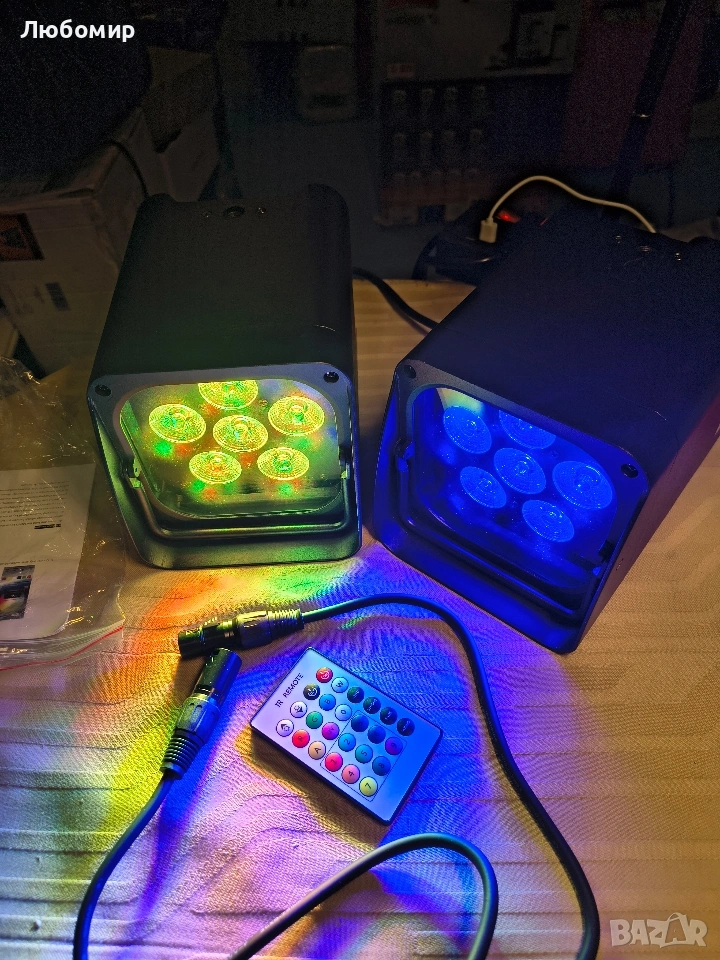 2 бр. захранвани от батерии прожектори, презареждащи се, Par Can 6x18W RGBWA+UV LED