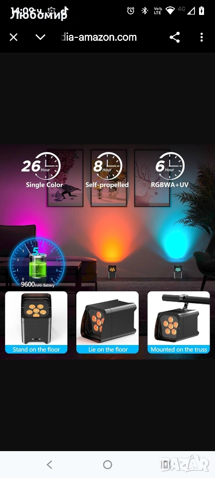 Без кашон са .2 бр. захранвани от батерии прожектори, презареждащи се, Par Can 6x18W RGBWA+UV LED прожектор 9600 mAh APP/дистанционно/DMX512 управление, сценични светлини, осветяване на закрито за сватба, DJ църква, коледен танц....2 бр. PAR лампи, 9600 mAh Вградена батерия за безжично осветяване нагоре. 100% истинска безжична връзка! Вграденият 2.4GHz безжичен DMX 512 приемник ви позволява да свържете множество лампи заедно без кабели. Вградената батерия ви позволява да използвате лампите без да ги включвате.
