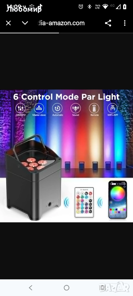【Режим на множество контрол】6 в 1 LED лампата за пара има 6 режима на управление: 2.4Ghz безжичен DMX512, master/slave, автоматичен, звук, дистанционно управление, Wi-Fi, управление чрез мобилно приложение (поддържа IOS и Android системи).