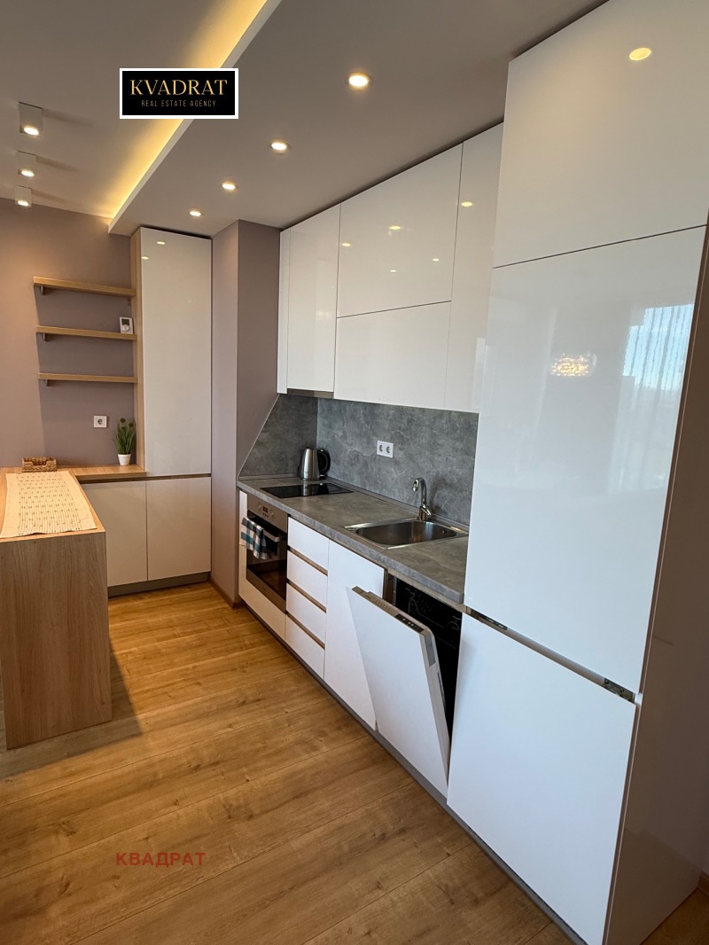 Предлагаме под наем стилно обзаведен двустаен апартамент, разположен в модерната сграда А3 на бул. България. Жилището се намира на висок етаж и предлага панорамна гледка към града и планината.