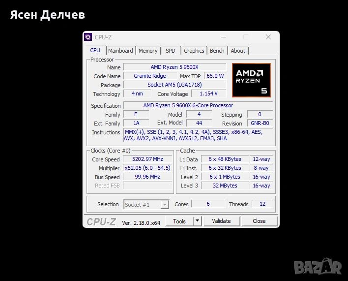 Ryzen 5 9600X, 6 cores, 5.4GHz, 38MB ,Box