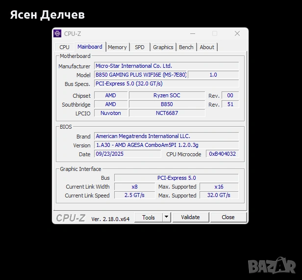 Дънна платка MSI - B850 Gaming Plus WIFI6E, AM5