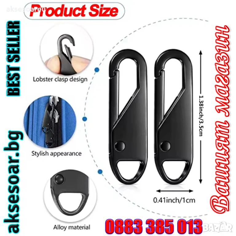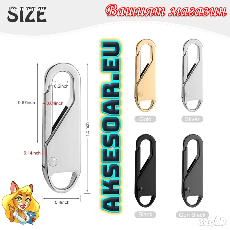 Тип продукт: Плъзгачи за ципове, дръжка за цип - сменяемо карабинерче
