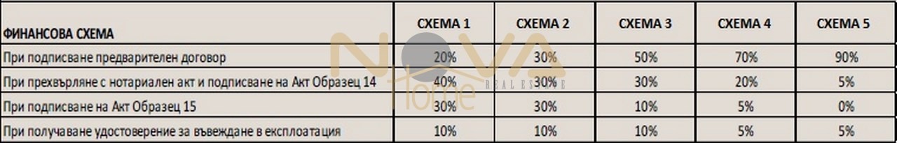 За удобсто на бъдещите собственици, предалагаме 5 схеми на плащане, които са прикачени към снимковия материал.