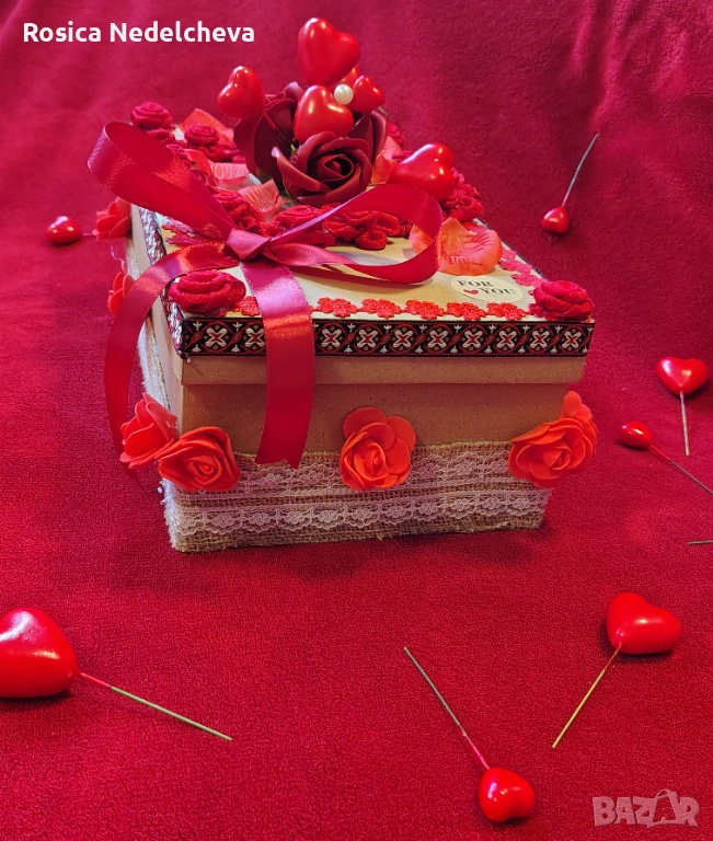 На вашето внимание,моето предложение за ръчно изработена подаръчна кутия за предстоящия празник,денят на влюбените.
